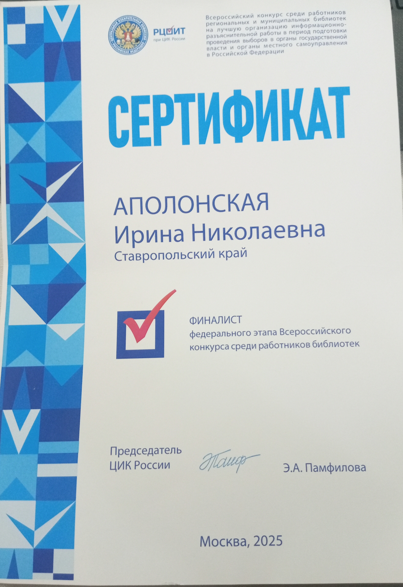 На очередном заседании Совета округа мы чествовали тех, чей труд часто остается за кадром, но является фундаментом нашей демократии — организаторов голосования, и тех, кто помогает нам делать осознанный выбор. У коллег двойной праздник: не только успешное проведение выборов в Ставропольском крае, но и 30-летний юбилей краевой избирательной комиссии. За безупречную и эффективную работу Почетными грамотами отмечены: 🌟 Ольга Николаевна Коваленко— председатель участковой избирательной комиссии № 205; 🌟 Елена Станиславовна Кучма — председатель участковой избирательной комиссии № 207; 🌟 Наталья Владимировна Муллова— председатель участковой избирательной комиссии № 210. Особых слов восхищения заслуживает Ирина Николаевна Аполонская, заведующий сельской библиотекой села Апанасенковского. Ирина Николаевна стала финалистом Всероссийского конкурса среди библиотекарей на лучшую организацию информационно-разъяснительной работы в период выборов! Это высокий результат, который показывает уровень наших специалистов. Спасибо вам за вашу преданность делу, ответственность и просветительскую работу! Желаю новых побед и профессионального долголетия 👏