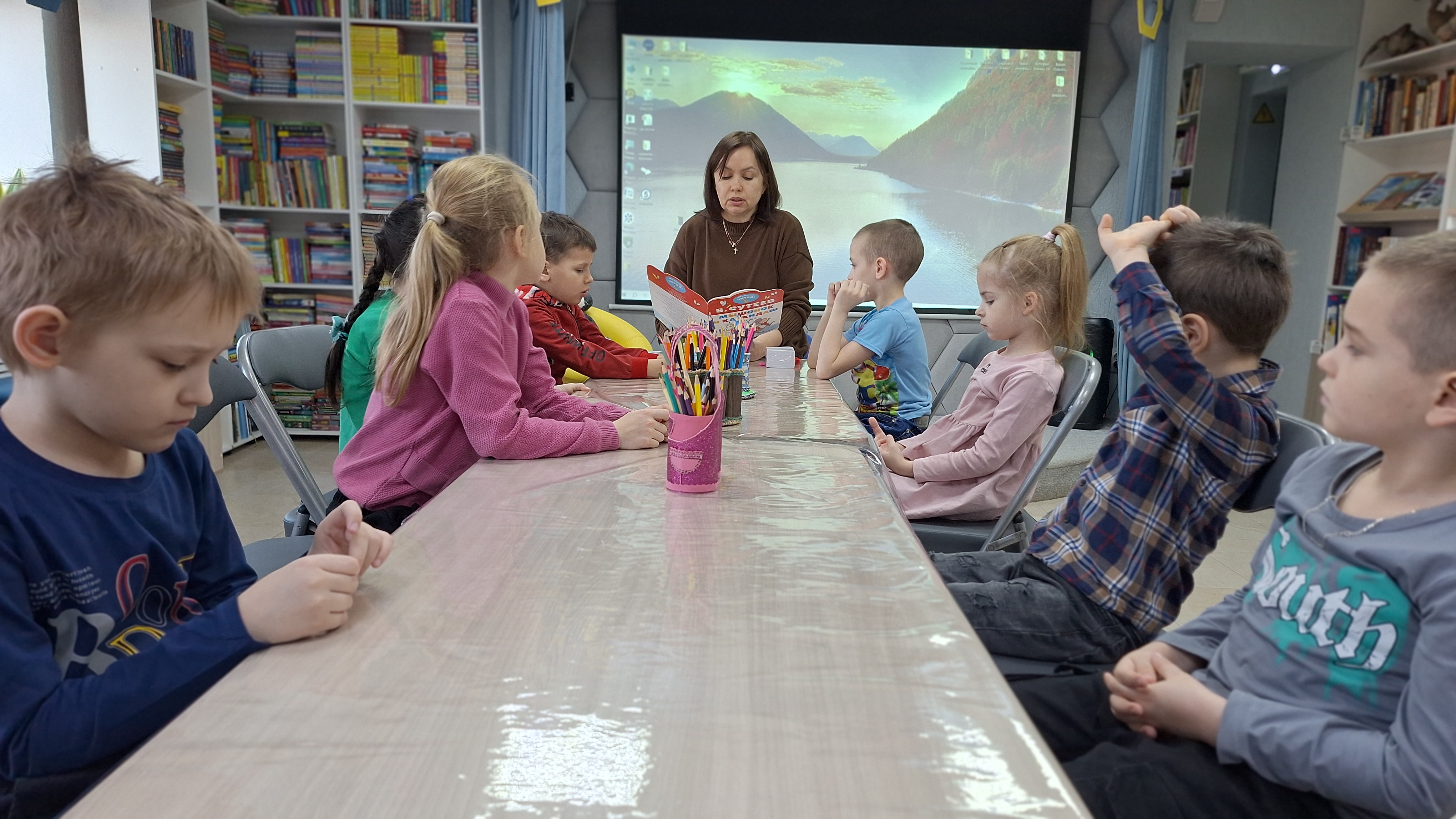 Для ребят из детского сада «Солнышко» библиотекари сельской библиотеки села Дербетовка провели литературное путешествие «С книгой мир добрей и...