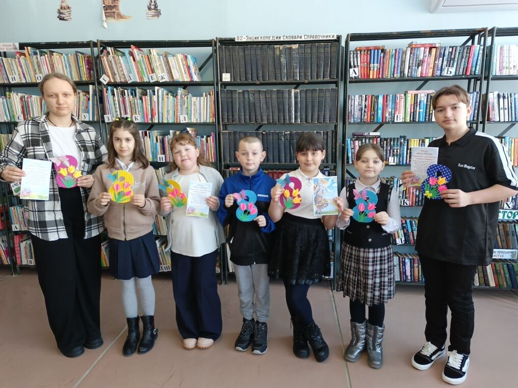 Работники сельской библиотеки п. Айгурский провели со школьниками мероприятие "Открытки для любимых" в рамках Всероссийской акции "Вам, Любимые!", приуроченной к празднованию Международному женскому дню 8 марта.