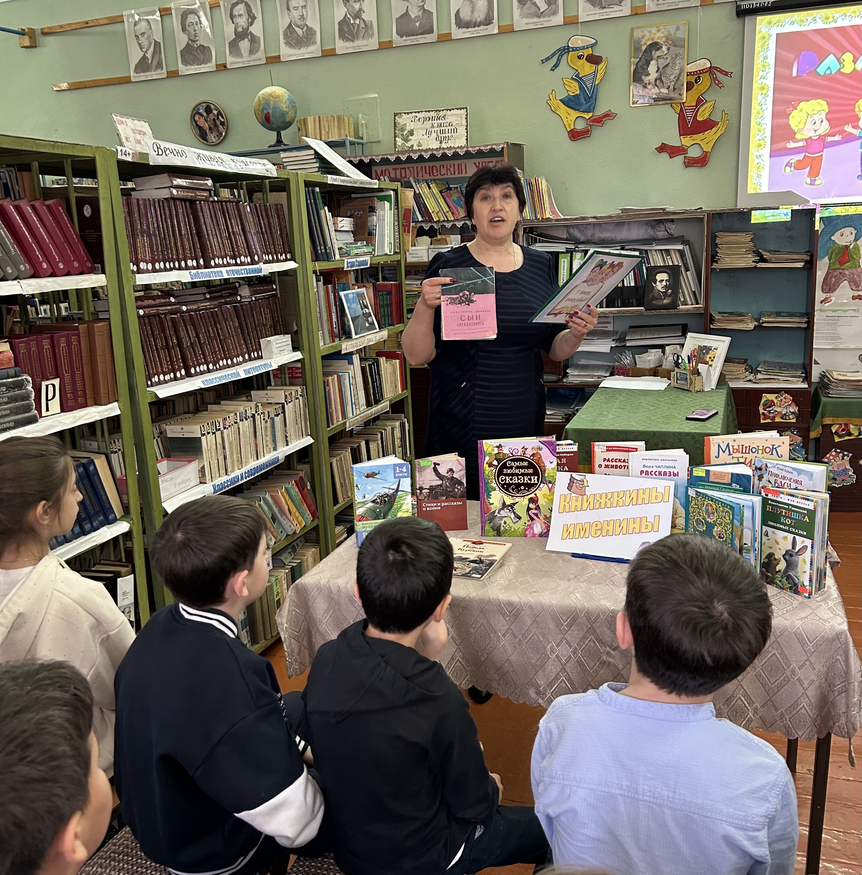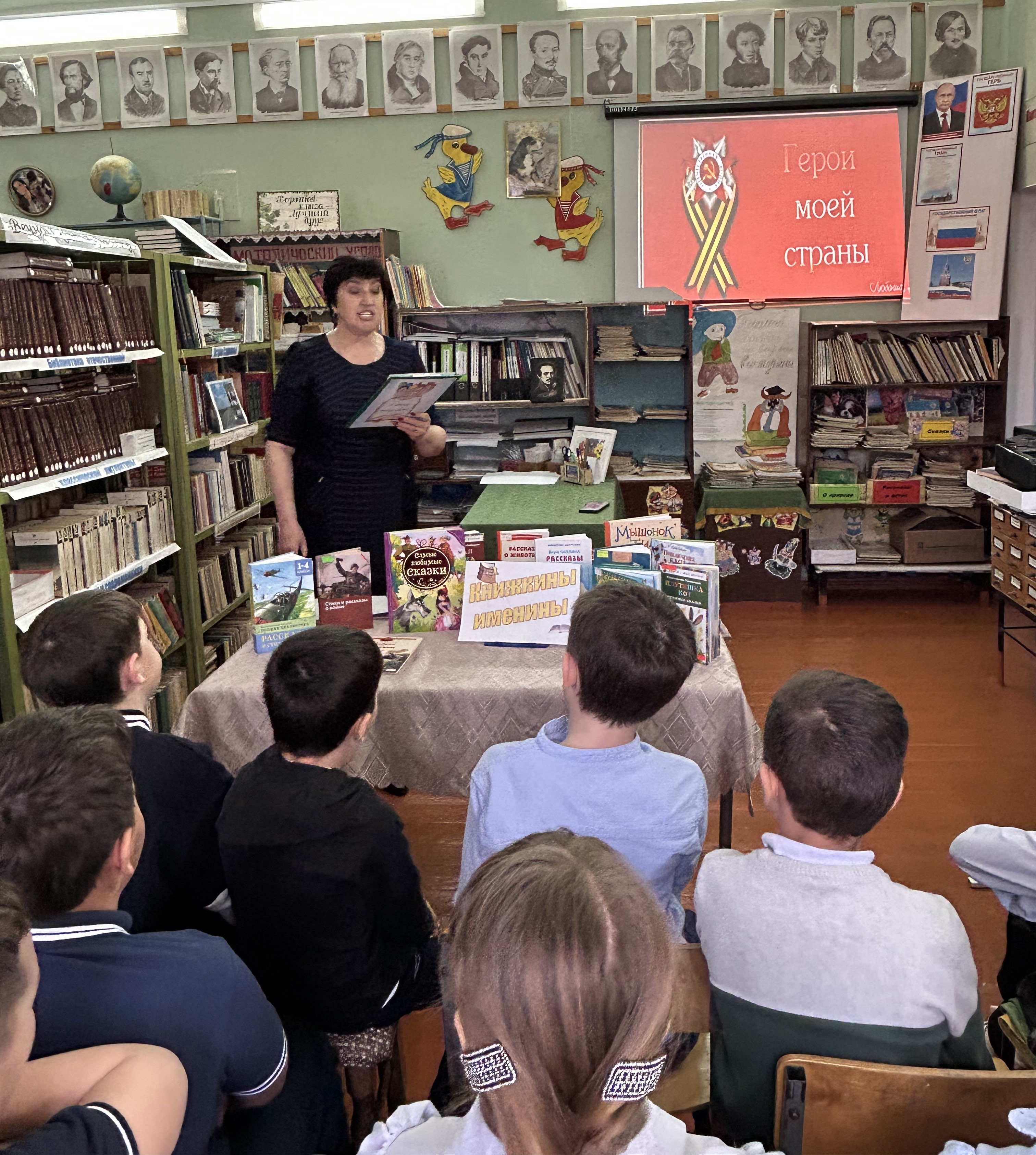 Неделя детской книги-2025 «История с продолжением» посвящена 80-летию Победы в Великой Отечественной войне и приурочена к Году защитника Отечества в Российской Федерации. Манычская сельская библиотека в очередной раз присоединилась к Всероссийской акции «Неделя детской и юношеской книги». Учащиеся 2 класса МБОУ СОШ №8 совершили путешествие в литературную гостиную «В сердцах и книгах память о войне». Дети узнали о истории самого праздника Неделя детской книги, о писателях, которые писали и пишут о ВОВ. Маршрут путешествия проходил по четырем станциям. На первой станции «Разминка» ребята вспомнили пословицы и поговорки о книгах ,на второй станции «Загадочная» отгадывали загадки военной тематики, станция «Герои моей страны» нужно было вспомнить имена и подвиги героев – лётчиков и солдат , на четвертой станции «Читай -ка», ребята слушали рассказы С.Алексеева прочитанные вслух библиотекарем. Кроме того, на промежуточных этапах ребята вспомнили даты основных военных событий, сочиняли четверостишия по предложенным рифмам. В завершении мероприятия юные читатели знакомились с книгами на выставке «Книги разные нужны, книги разные важны!».