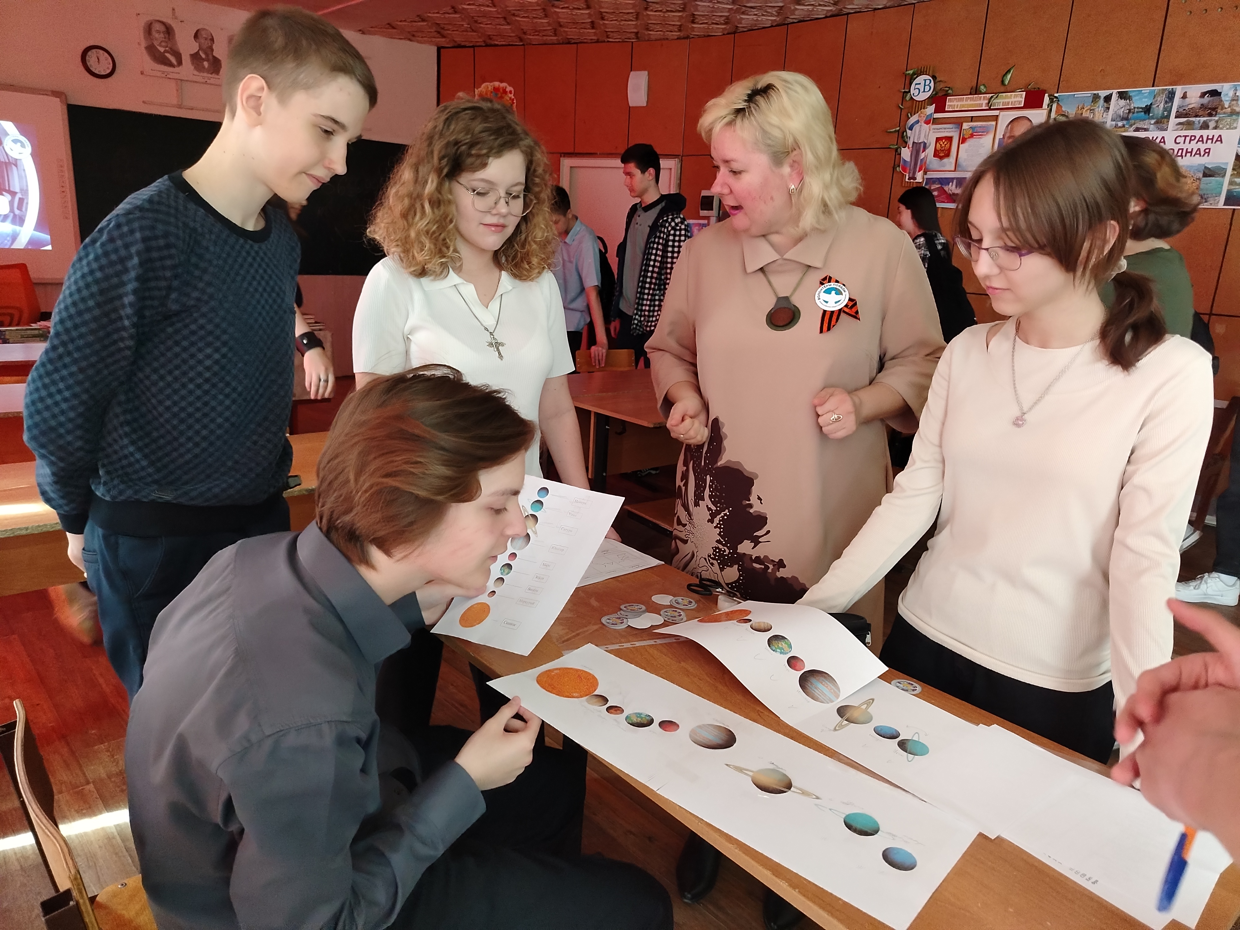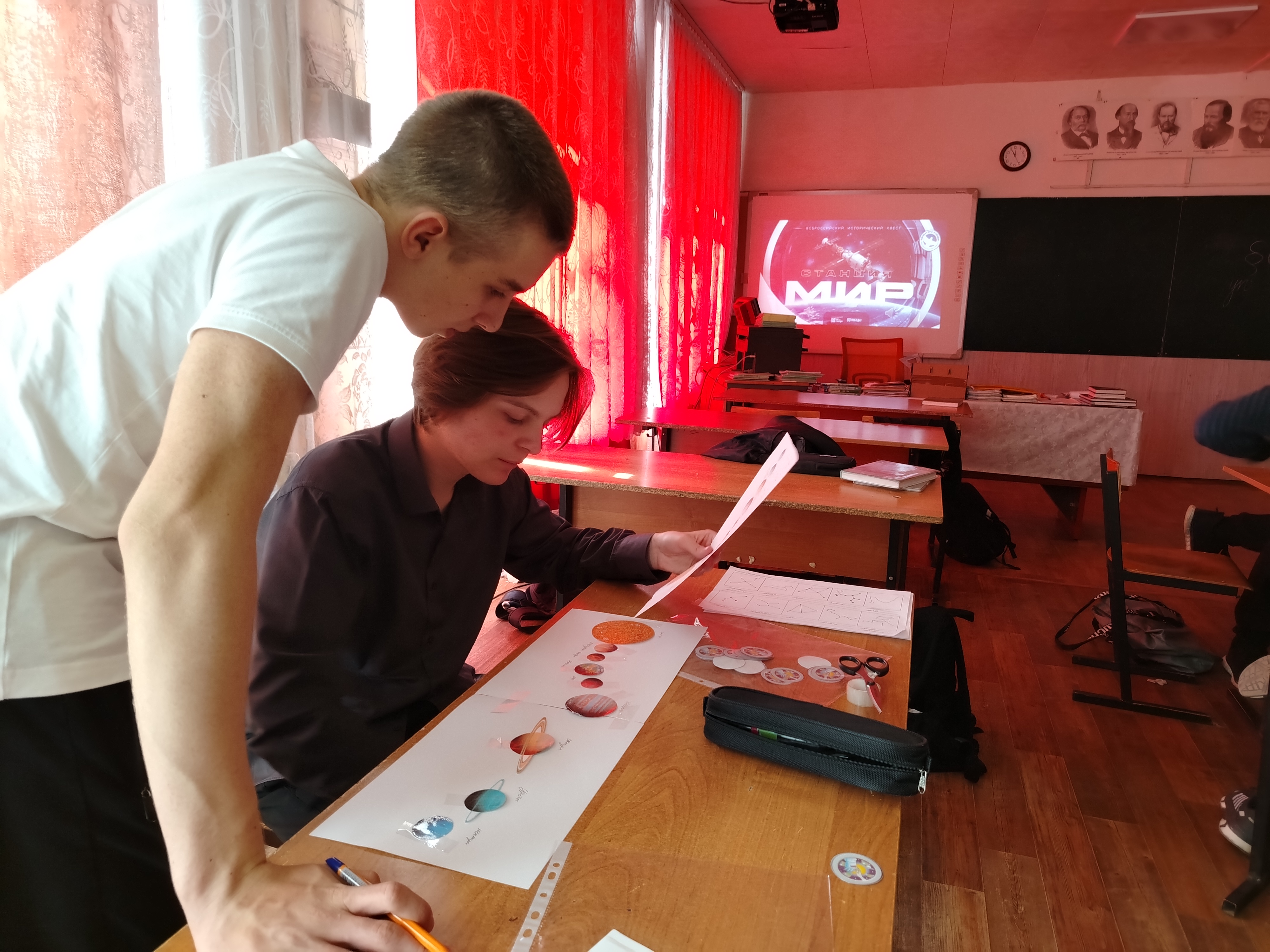Далее ребята перешли к выполнению различных заданий интеллектуально-развлекательной игры. Разделившись на 2 команды «Сириус» и «Чёрная дыра» школьники соревновались за звание лучших знатоков космонавтики. Отгадывали созвездия, расставляли планеты солнечной системы в правильном порядке, отвечали на вопросы викторины «Млечный путь» и другие.