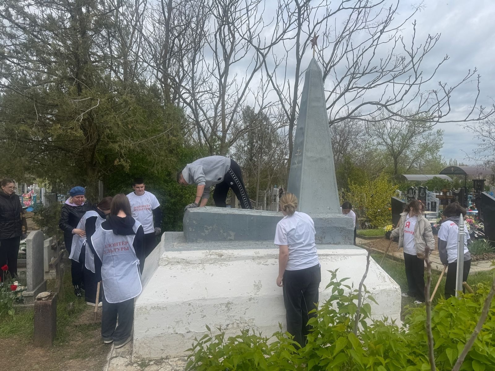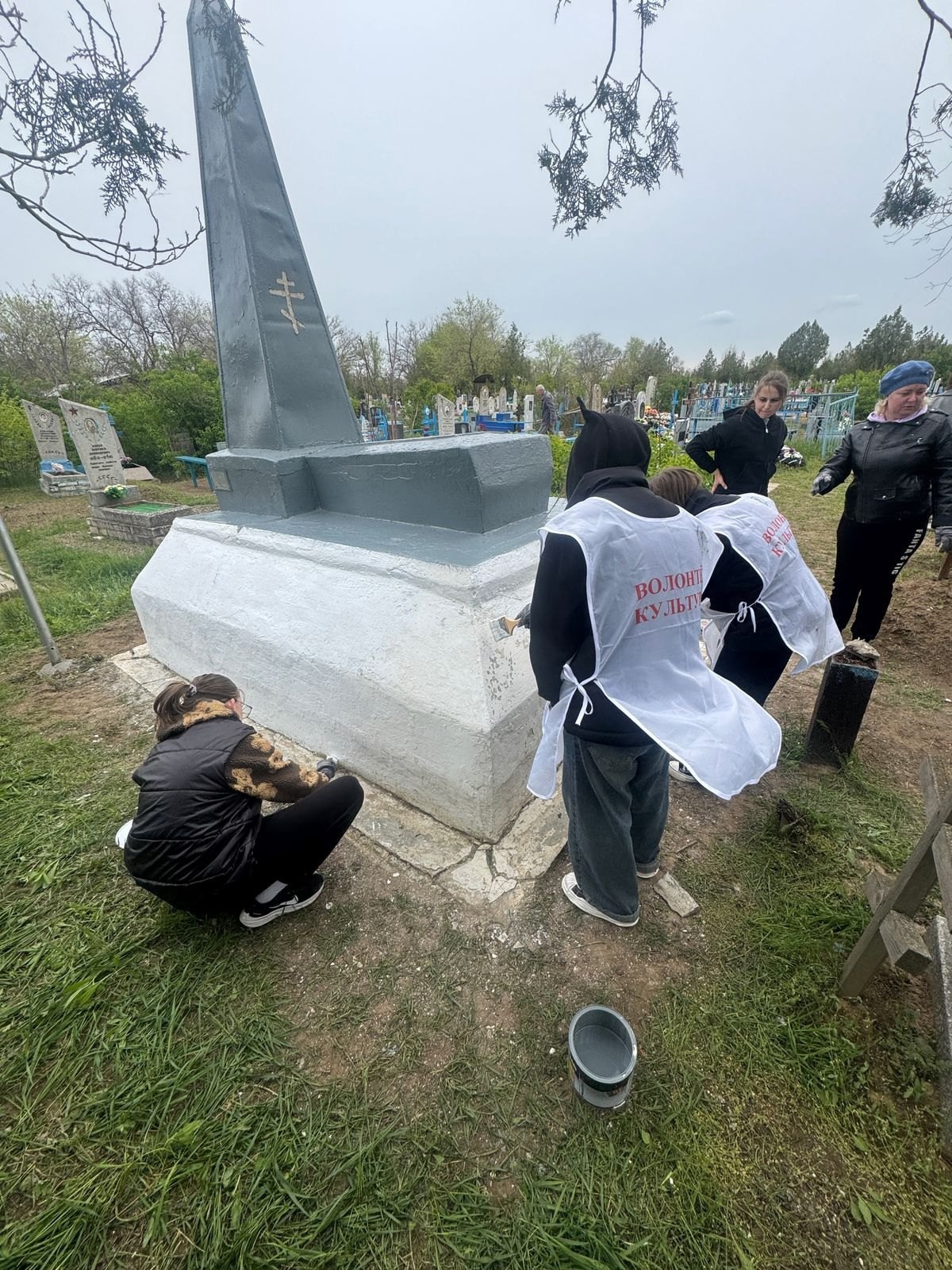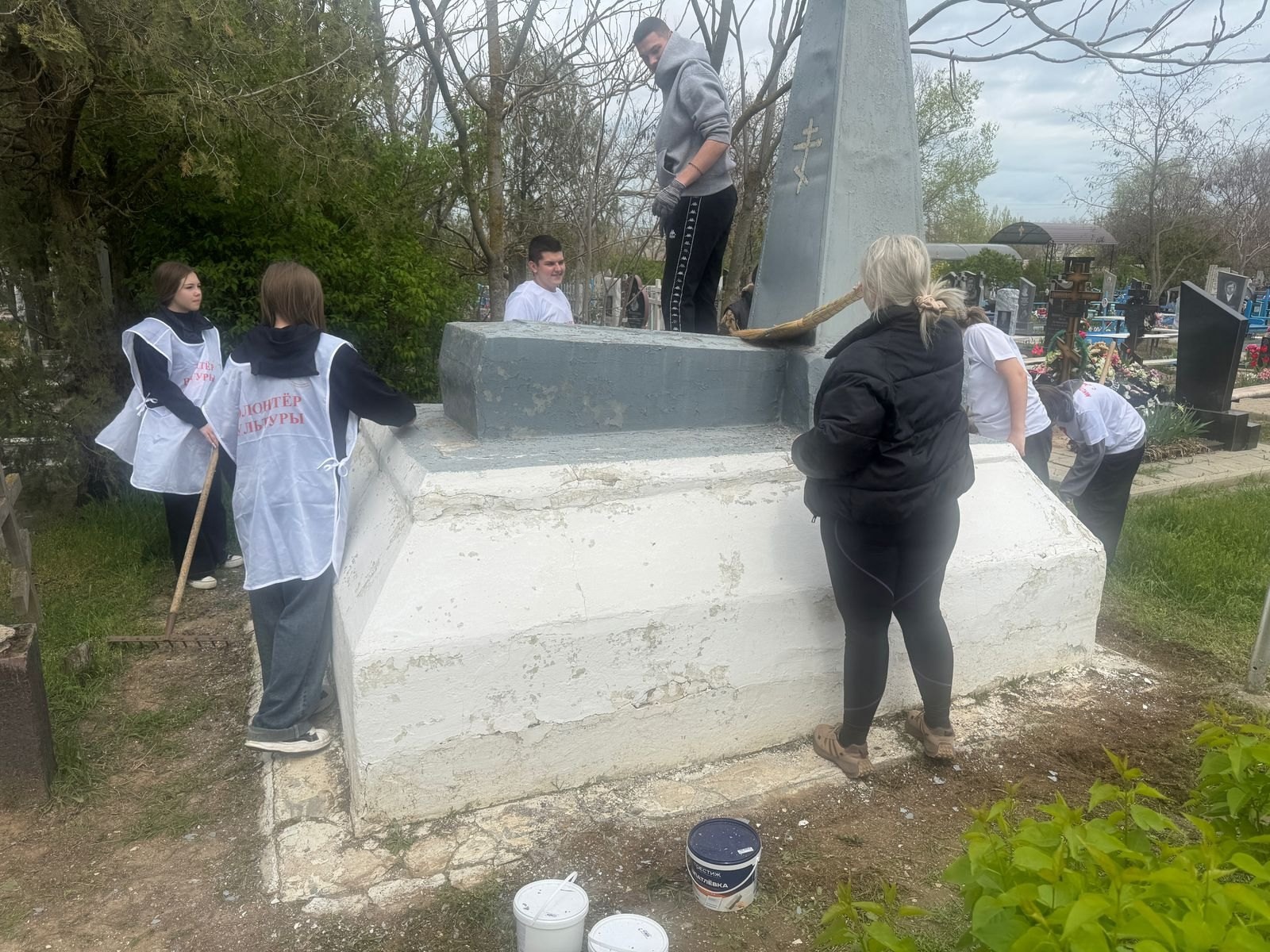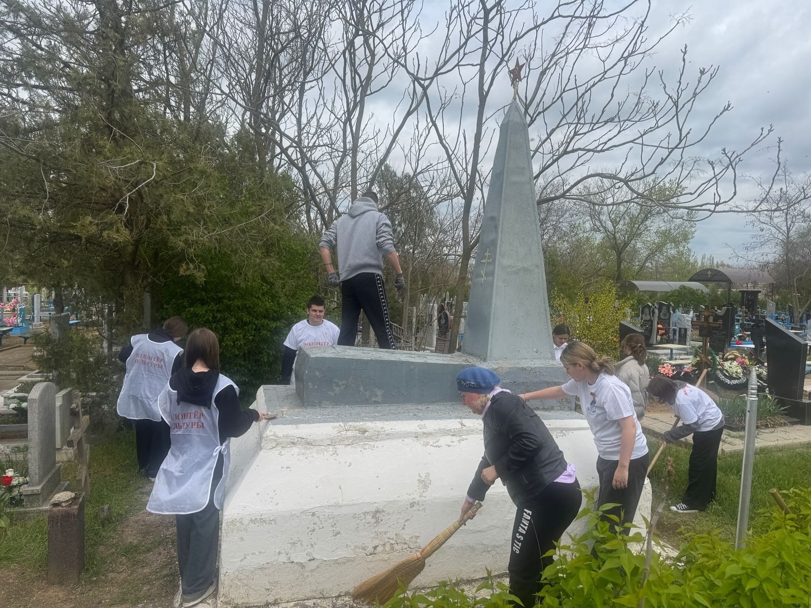 В ходе акции участники мероприятия очистили территорию мемориала от мусора, травы и сухих веток, а также произвели покраску памятника.