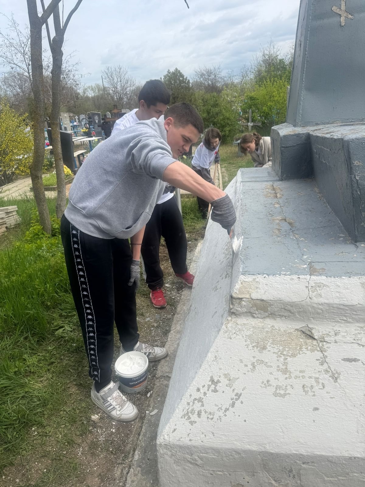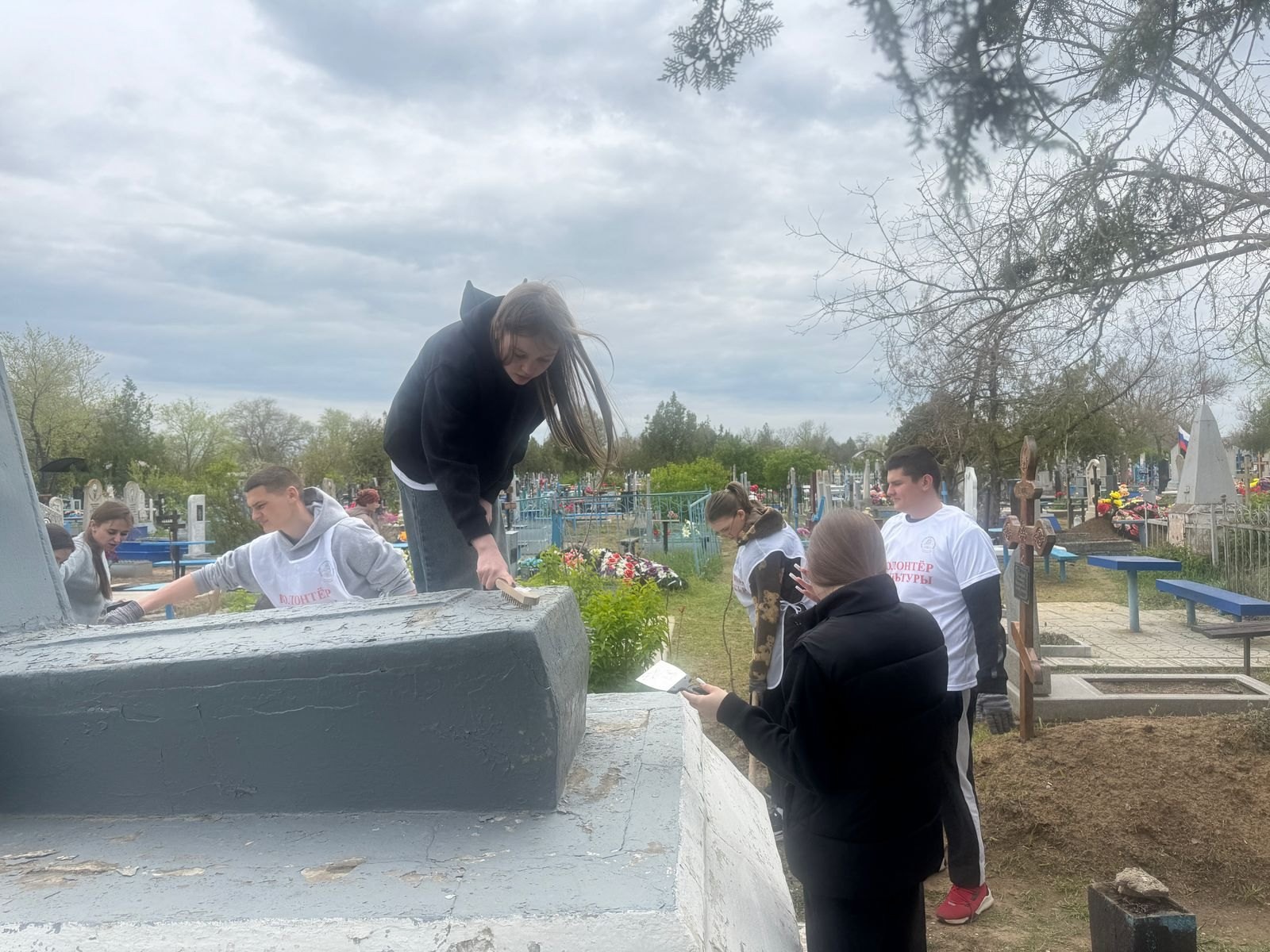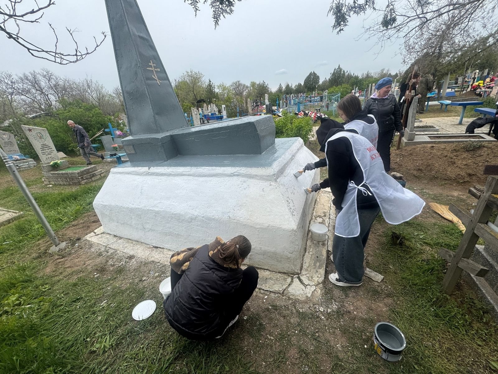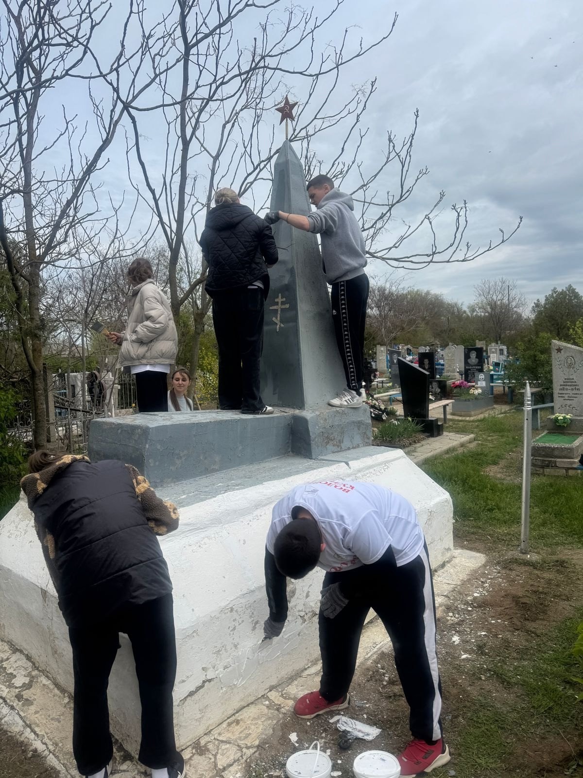 В ходе акции участники мероприятия очистили территорию мемориала от мусора, травы и сухих веток, а также произвели покраску памятника.