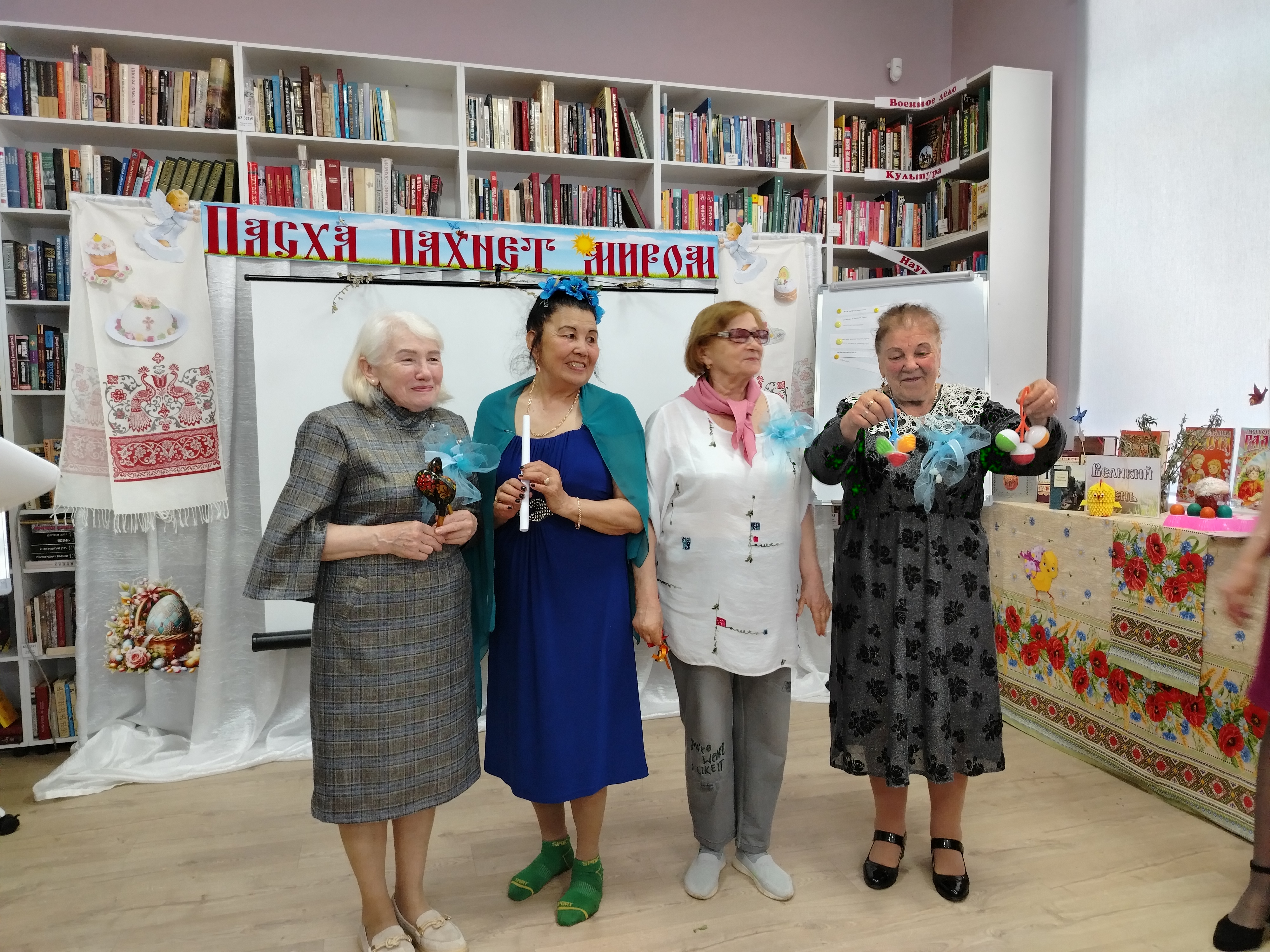В завершение было организовано чаепитие с пасхальными куличами, участники клуба с удовольствием угощались пасхальными лакомствами за чашкой ароматного чая, делились рецептами пасхальной выпечки и оригинальными способами окрашивания яиц. Все присутствующие получили массу позитивных эмоций, доимой уходили с праздничным настроением.