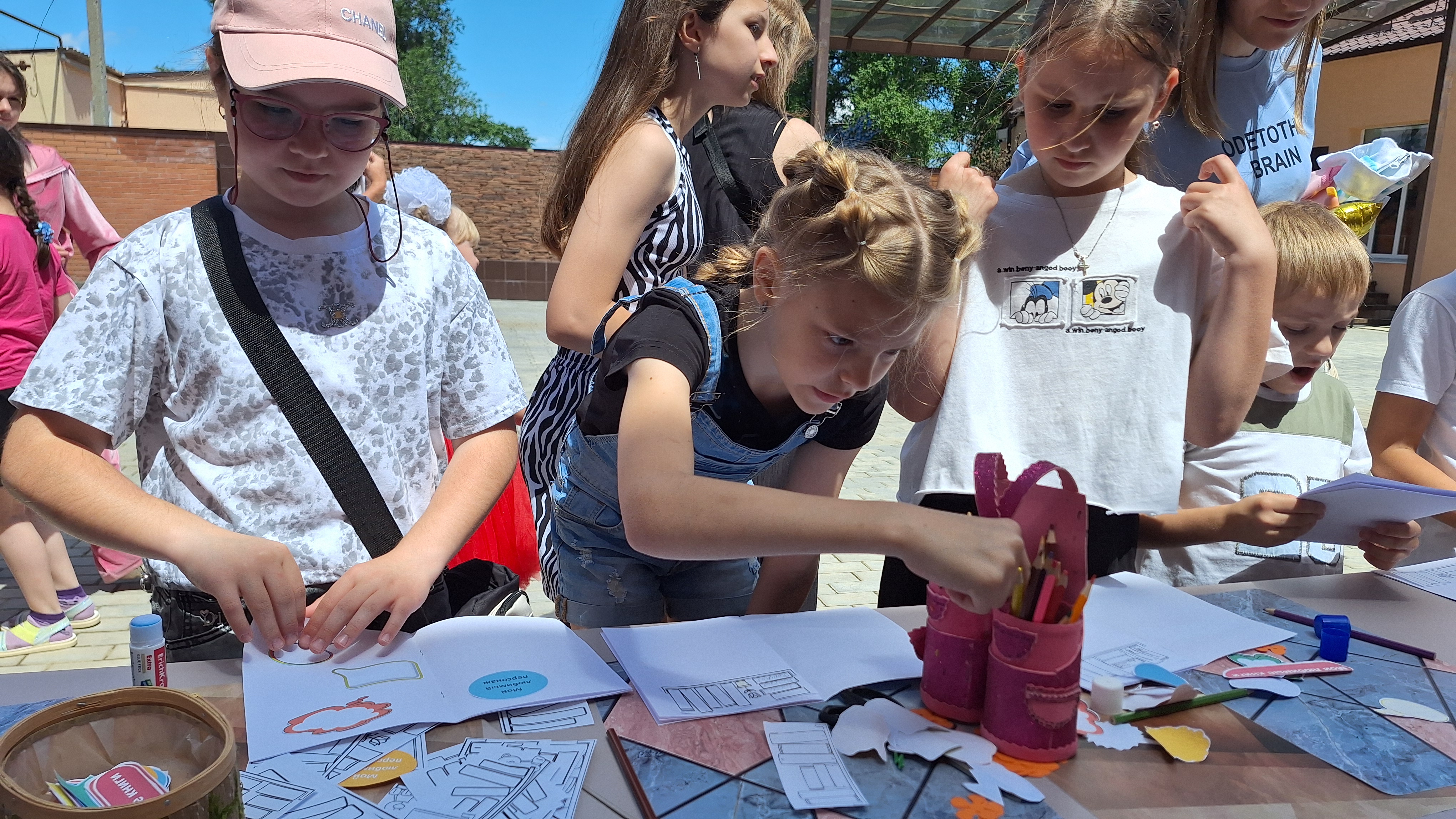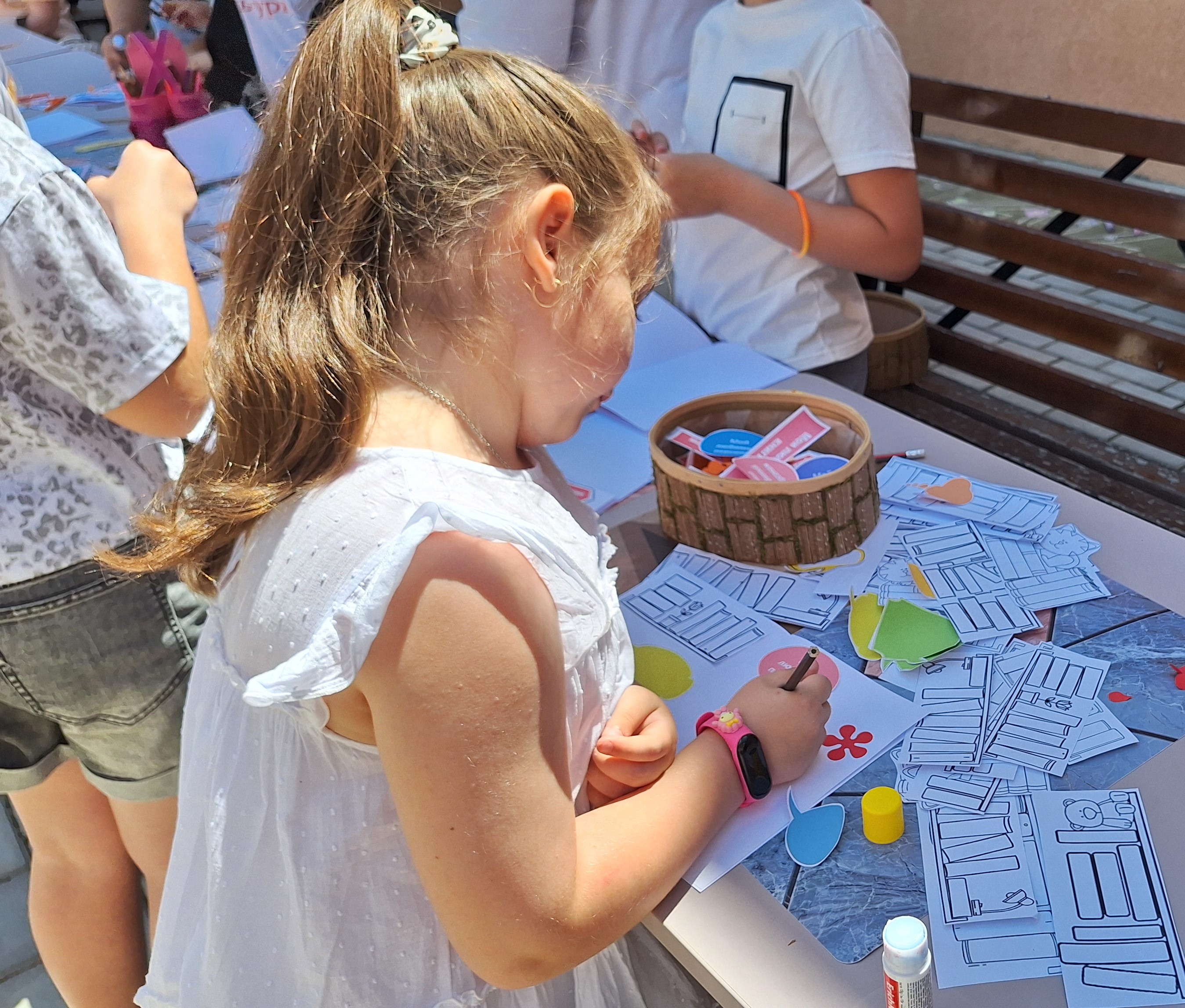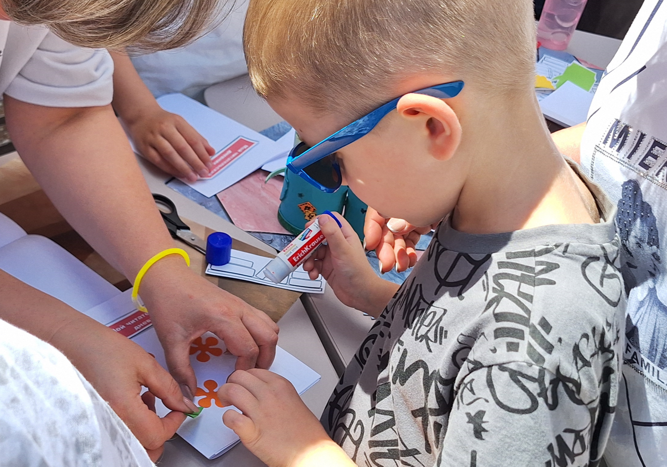 1 июня на танцевальной площадке МБУК СКЦ юные читатели получили возможность самостоятельно украсить маленькие книжечки, ставшие настоящими шедеврами благодаря ярким наклейкам, забавным рисункам книжных полок и креативным надписям.