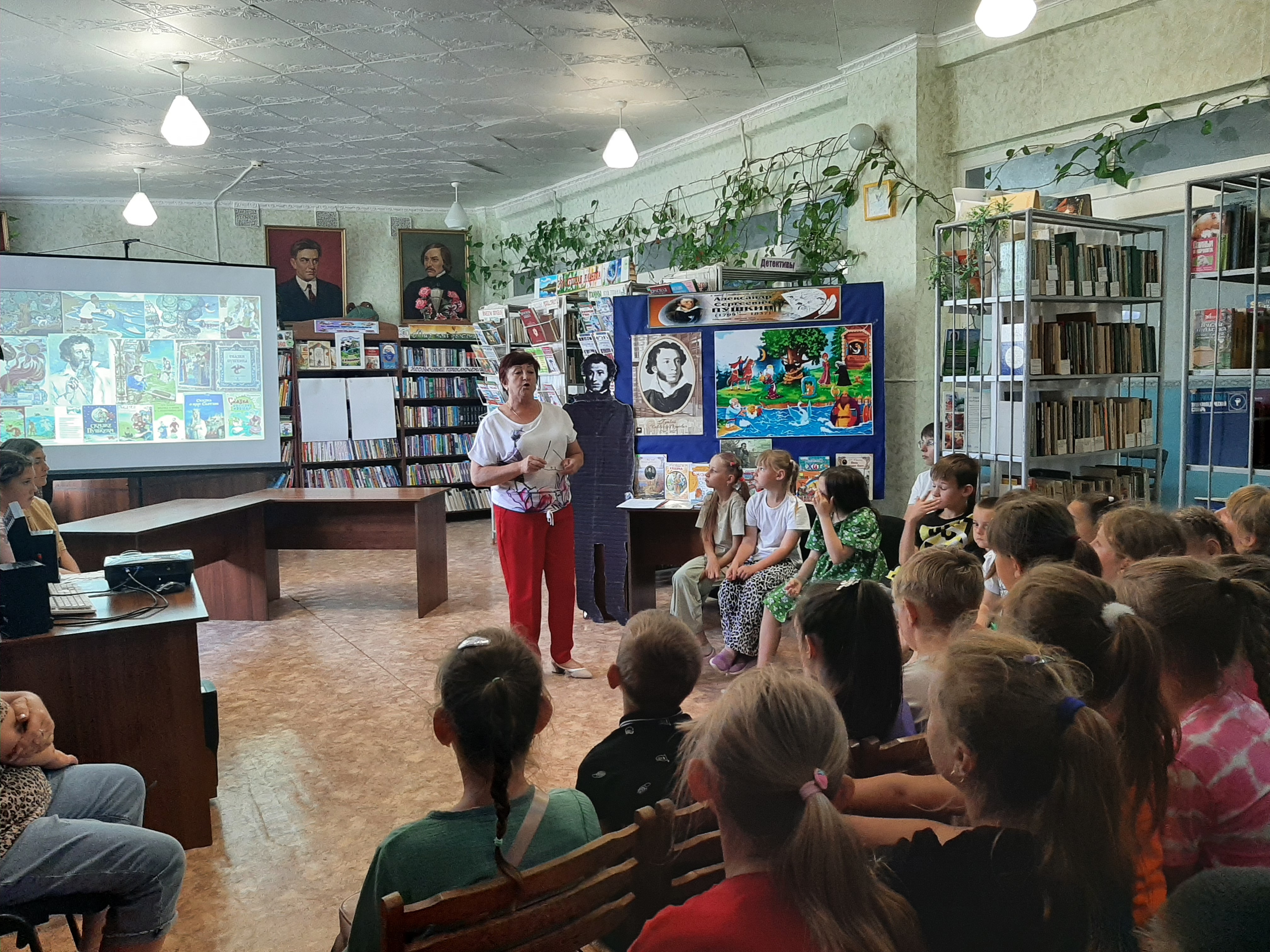 Ежегодно 6 июня в России отмечается Пушкинский день. Все знают Александра Сергеевича Пушкина как выдающегося поэта, прозаика и драматурга, чье творчество оказало колоссальное влияние на мировую литературу. Пушкин является основоположником современного русского литературного языка и признан величайшим русским поэтом. С детьми из пришкольного лагеря «Солнышко» провели литературный квиз «Что за чудо эти сказки…». Рассказали ребятам о многогранном таланте гениального поэта, о его вкладе в мировую культуру, об интересных фактах из его жизни. Участники активно прошли все задания литературного квиза, раскрывающие творчество поэта, записали полные имена героев в параде сказочных героев «Здравствуй, сказочный герой!», ответили на вопросы литературного лото «В гостях у сказочных героев», рассмотрели картины из сказочной галереи «Узнай сказку по рисунку», нашли отгадки на литературные загадки «Угадай, из какой мы сказки» и поработали в мастерской художника «У Лукоморья…». В ходе литературного квиза дети с большим интересом погрузились в волшебный мир пушкинских сказок, показали отличные знания творчества великого русского писателя. Мероприятие прошло увлечённо и радостно, оставив в памяти чудесные произведения А. С. Пушкина, которые пробуждают только добрые чувства: любовь к Родине, чуткость, отзывчивость, милосердие, взаимопонимание, ответственность. Завершилось мероприятие просмотром мультфильма «Сказка о мертвой царевне и семи богатырях».