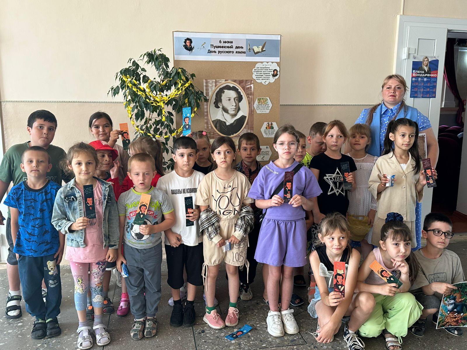 6 июня в России отмечается День русского языка — день рождения великого поэта А. С. Пушкина. Сельская библиотека совместно с Домом культуры провели мероприятие, посвящённое этому знаменательному дню. Дети посмотрели мультфильм «Биография А. С. Пушкина», а затем отправились в увлекательное путешествие по его сказкам. Они разгадывали загадки Кота Учёного, участвовали в весёлом конкурсе «Рыболов», собирали пазлы с изображением героев сказок и угадывали, из какой сказки они взяты. В финале мероприятия все участники получили сладкие подарки и тематические листовки со списком сказок Пушкина. #ПушкинскийДеньРоссии