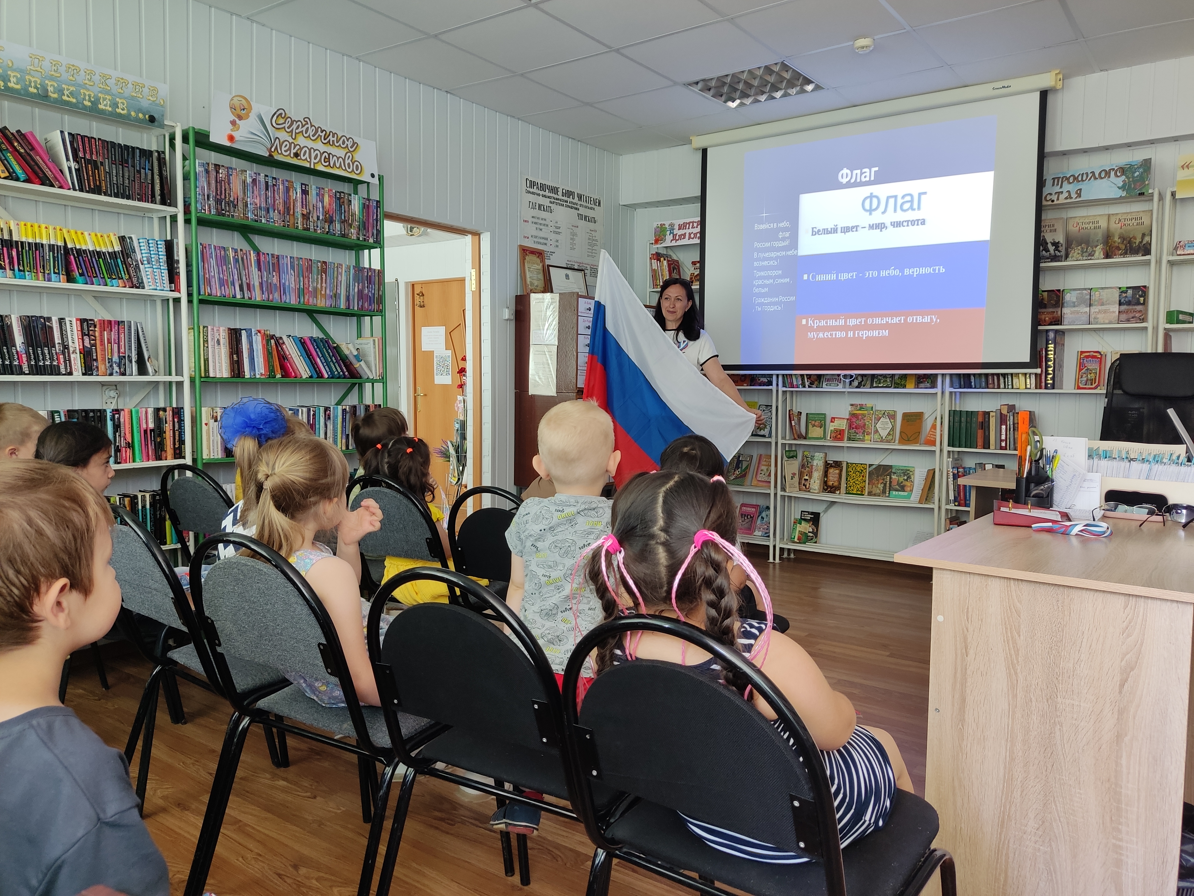 12 июня наша страна отмечает замечательный праздник — День России, день свободы, мира и добра. Накануне Дня России в сельской библиотеке села Дербетовка прошло мероприятие «Моя Россия». Целью этого мероприятия было формирование у детей представлений о России как о государстве, о родной стране, воспитание чувства любви к Родине. Дети вспомнили, почему наш флаг состоит из трех цветов, и что обозначает каждый цвет. Ребята торжественно стоя послушали Гимн нашей страны, узнали официальные и неофициальные символы России. В конце мероприятия был организован мастер-класс по изготовлению сердца в цветах российского флага. Эта композиция представляла собой яркое воплощения патриотизма и единства. Сердце - триколор стало символом любви, гордости и преданности Родине, подчеркивая важность воспитания детей в духе уважения традиций и ценностей нашей страны.
