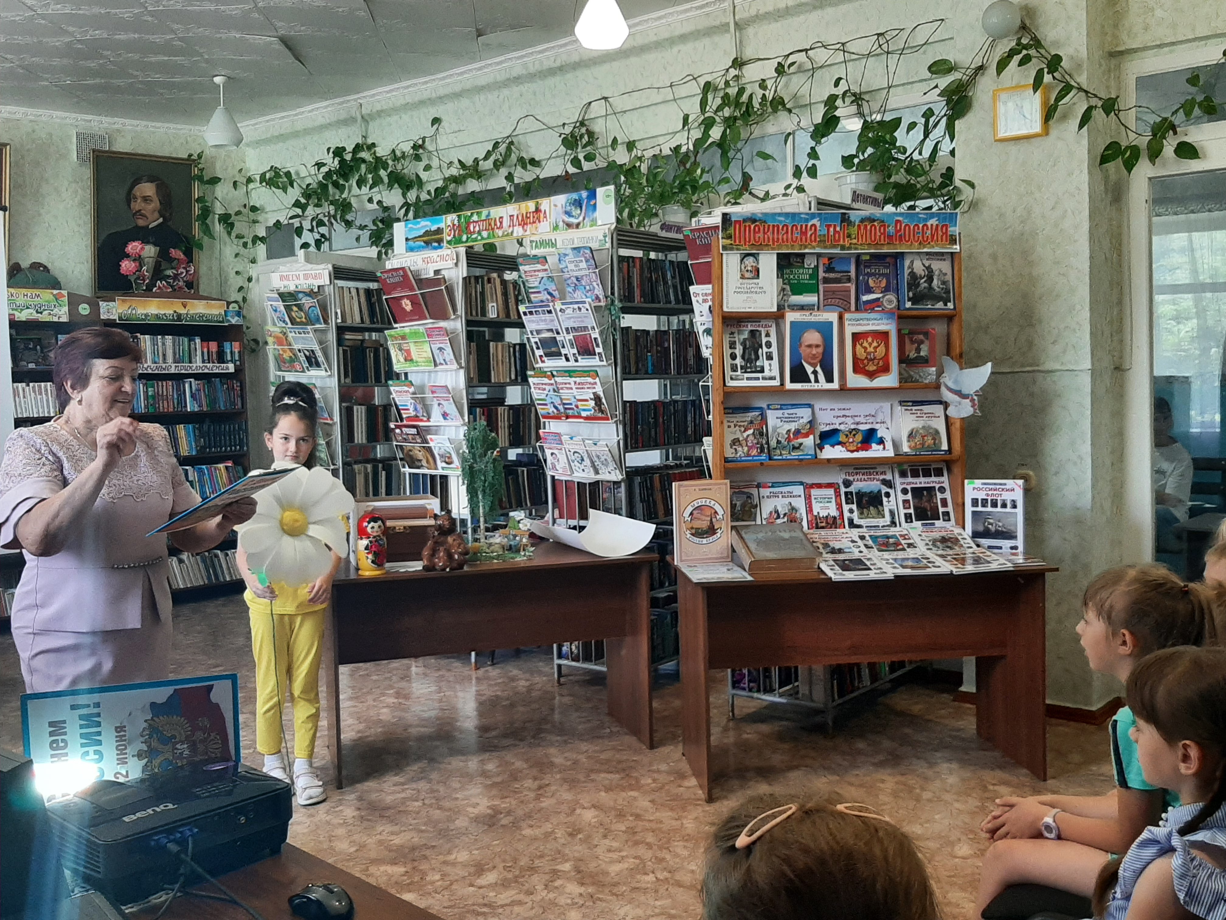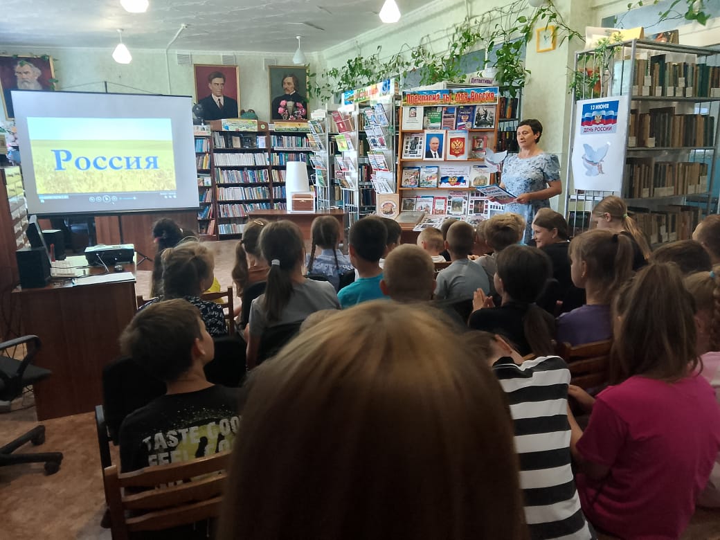 День России – это отличный повод рассказать детям ещё раз об истории нашей огромной и самой красивой в мире многонациональной страны, о многообразии народных традиций. В ходе информационной беседы "Россия - великая страна" прозвучало много самых теплых и искренних слов о нашей Родине, о народе, который любит и гордится своей страной. Ребята из пришкольного лагеря «Солнышко» узнали много удивительных фактов о нашей Родине, расширили свои знания о главных государственных символах: флаге, гербе, гимне, приняли активное участие в викторине «Угадай-ка», вспомнили пословицы и поговорки о Родине. Вниманию ребят были представлены книги об истории нашей страны и материалы о государственных символах России. Мероприятие сопровождалось показом видеороликов: «Моя Родина - Россия», «Россия – ты моя страна».