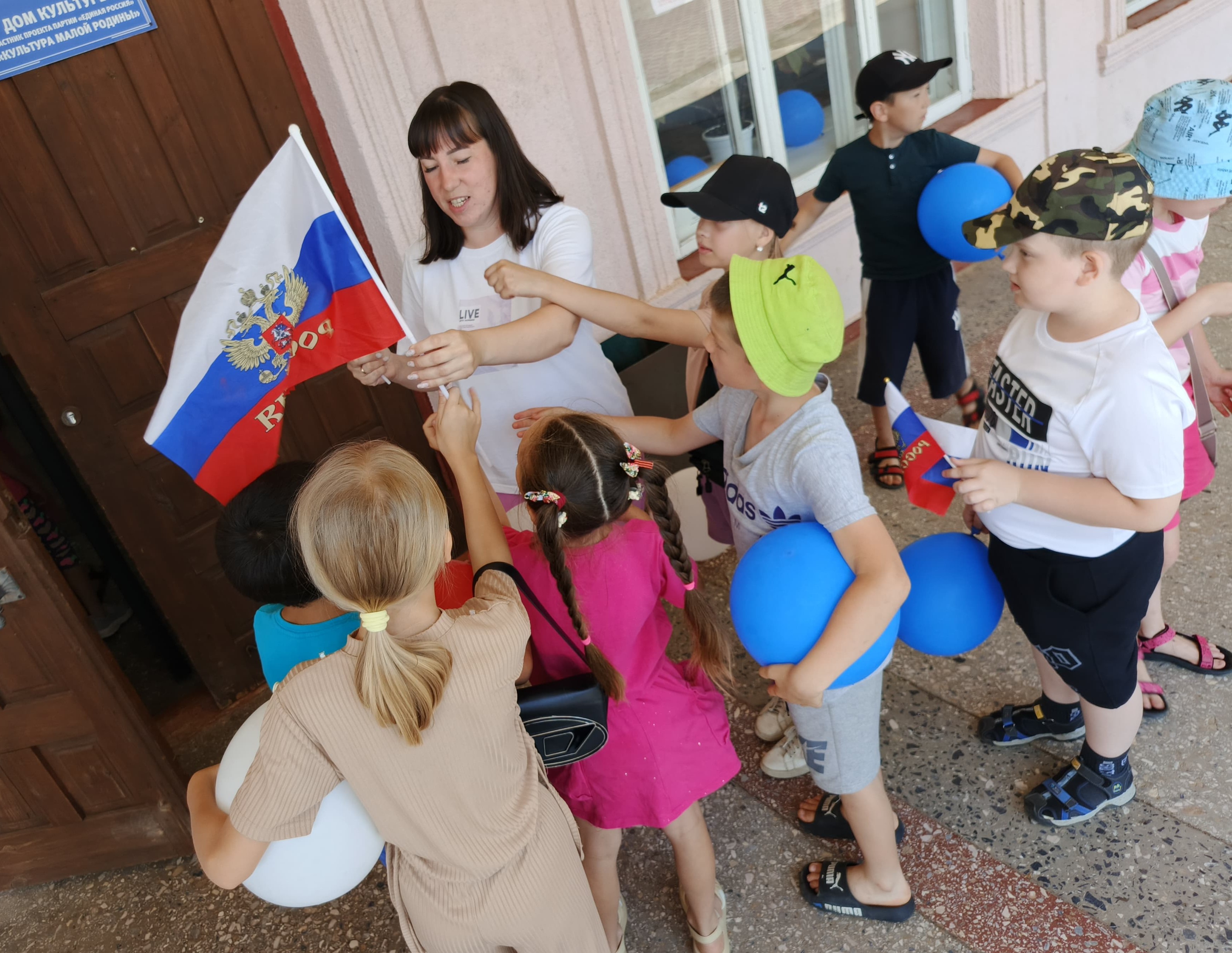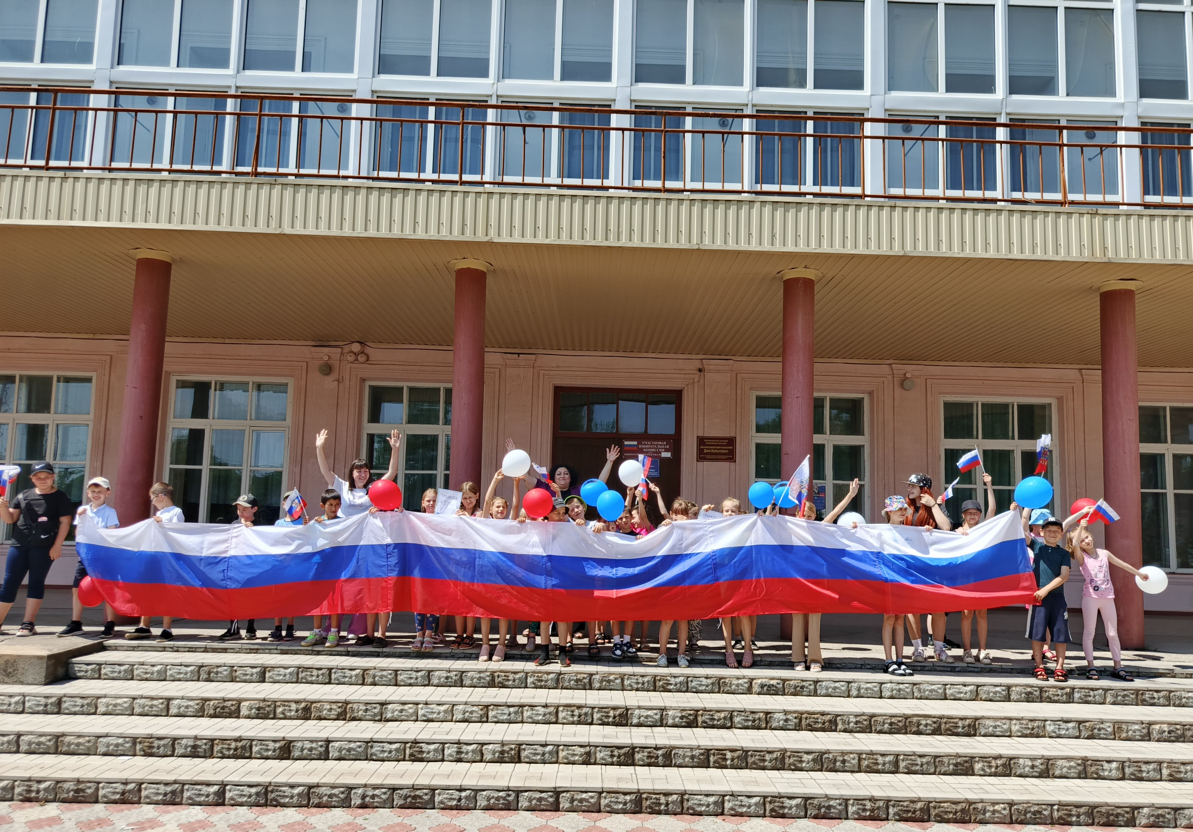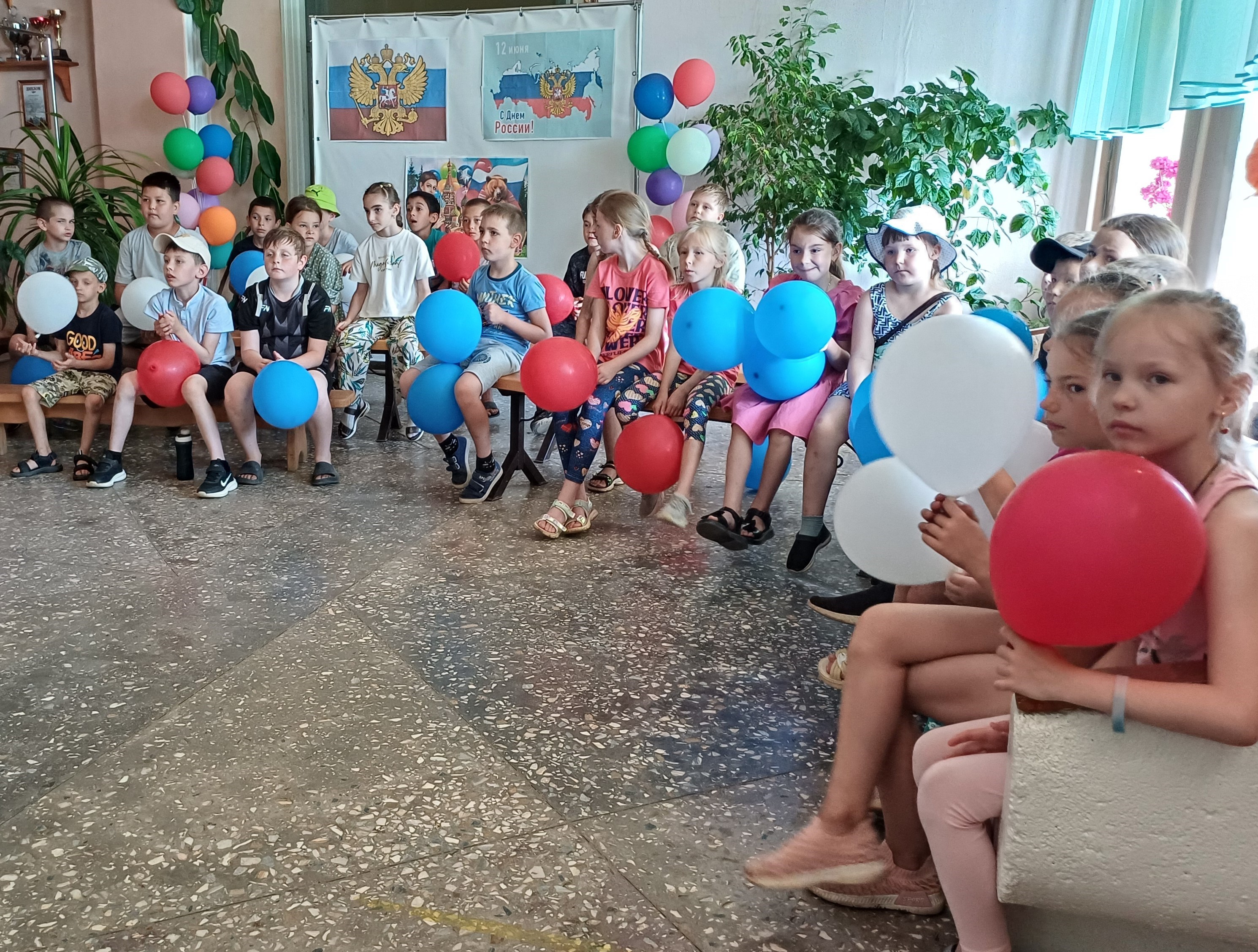 11 июня ребята из школьного лагеря «Солнышко» приняли активное участие в увлекательном мероприятии «Что ты знаешь о России?». Библиотекарь рассказала школьникам о значимом празднике – Дне России, который отмечается ежегодно 12 июня, государственных символах страны. Дети вспомнили, почему наш флаг состоит из трёх цветов, и что обозначает каждый из них, как выглядит герб, вместе спели гимн нашей Родины, поучаствовали в игре «Моя Россия», активно отвечали на вопросы викторины, получая смайлики за правильные ответы. Завершилось мероприятие развёртыванием государственного флага России.