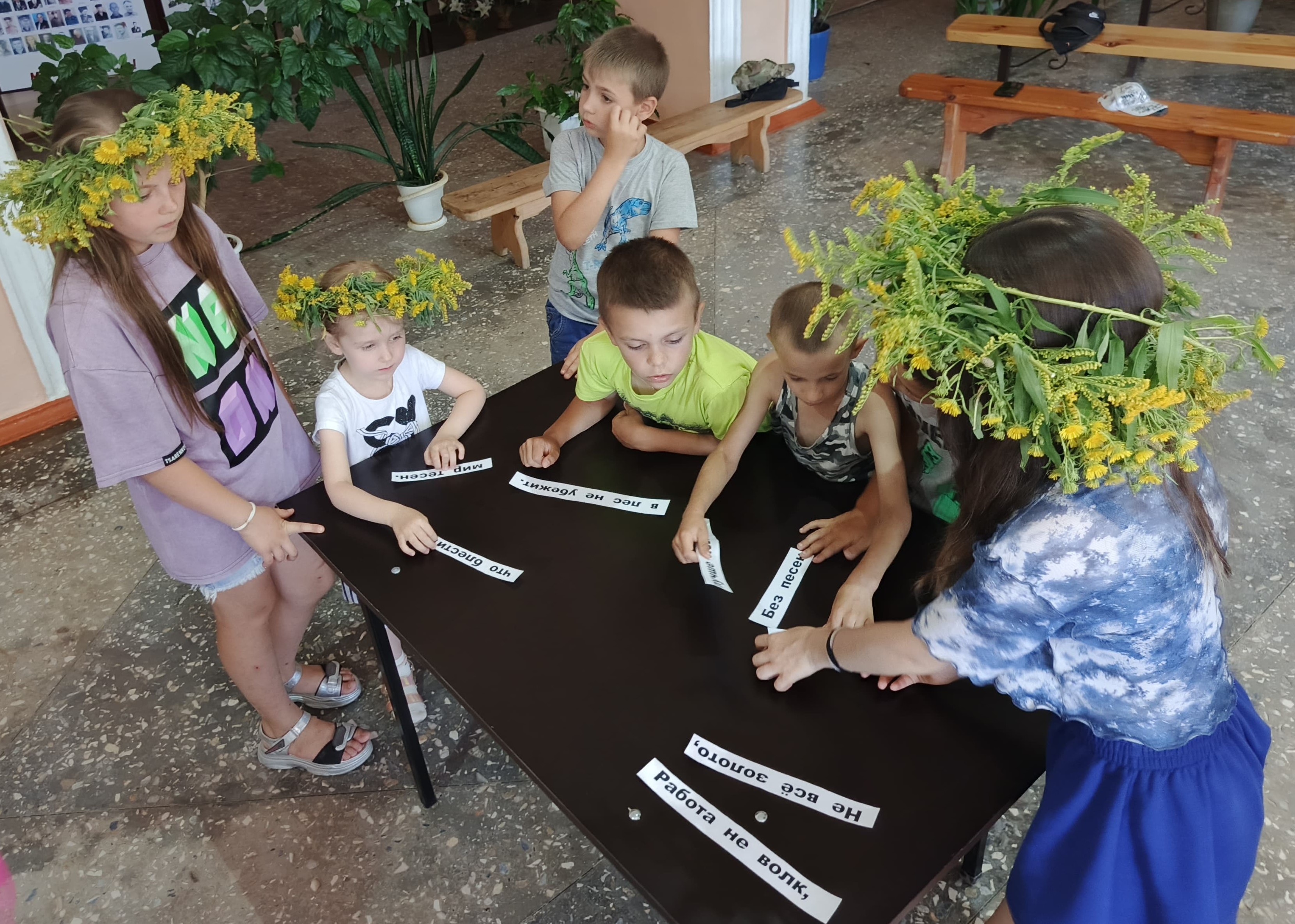 11 июля ребята из школьного лагеря «Солнышко» приняли участие в ярком и увлекательном мероприятии - фольклорном празднике, посвящённом Дню косоворотки. Школьники погрузились в историю и традиции русского народного костюма, узнав немало нового о знаменитом элементе гардероба - косоворотке. Они изучили особенности её оформления, материалов и способов декорирования, а также закрепили полученные знания на практике, примеряя настоящую косоворотку и рассматривая её элементы поближе. Продолжением программы стали занимательные конкурсы и интерактивные задания. Ребятам предложили разгадать названия предметов русского быта по рисункам и вспомнить их предназначение, собрать известные пословицы о труде и дружбе. Завершающим этапом стали подвижные игры, такие как «Ручеёк», «Веретено» и «Золотые ворота», наполненные атмосферой веселья и задора.