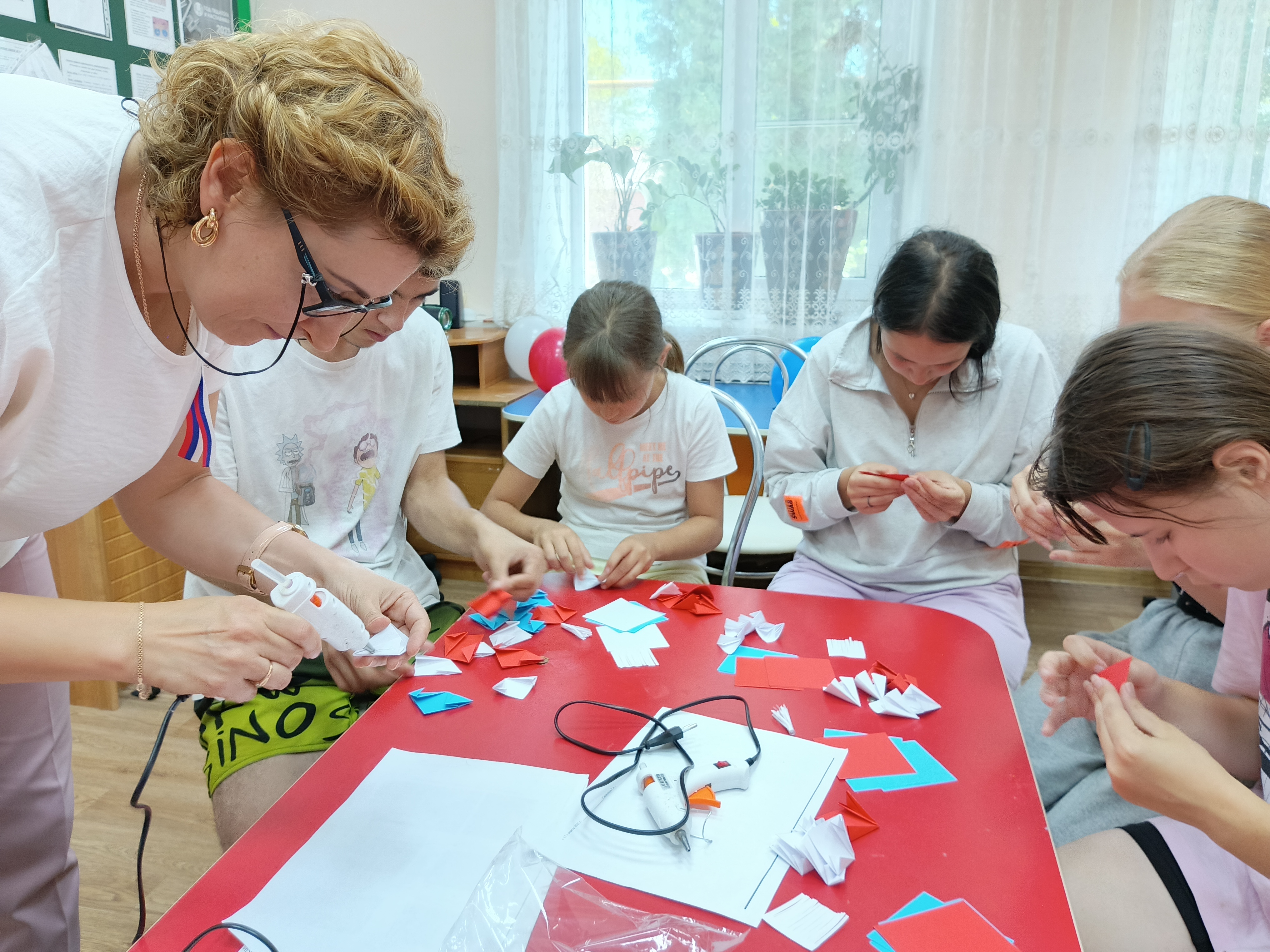 Ребята с удовольствием разгадывали загадки, посвященные цветам флага, демонстрировали свою внимательность в игре «Белый, синий, красный», а также проявили творческие таланты в мастер-классе по изготовлению красивого цветка в цветах триколора.