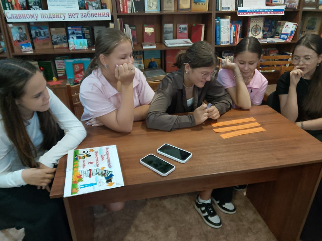 8 сентября во всем мире отмечается Международный день грамотности, посвященный повышению качества и доступности образования для всех людей Земли. С учащимися шестого класса МКОУ СОШ №7 с. Рагули сельская библиотека с.Рагули провела лингвистический урок «Слово во славу грамотности» Библиотекарь рассказала, что такое грамотность, как самому стать грамотным, о том, что в мире ведется борьба с неграмотностью. Ребята разделились на три команды и приняли активное участие в викторине «Знатоки русского языка» и играх «Подбери синоним», «Состав словечко», «Назови одним словом». Учащиеся проявили смекалку и логику при отгадывании загадок, продолжили пословицы о грамотности и приняли участие в конкурсе «Отгадайка-ка», где продемонстрировали уровень своей грамотности. День грамотности показал, что никогда не стоит забывать о собственной грамотности всегда необходимо ее повышать. Учить правила читать книги тренировать память развивать внимание и учиться сосредотачиваться. В обществе всегда ценятся грамотные люди. Быть грамотным значит – быть престижным.