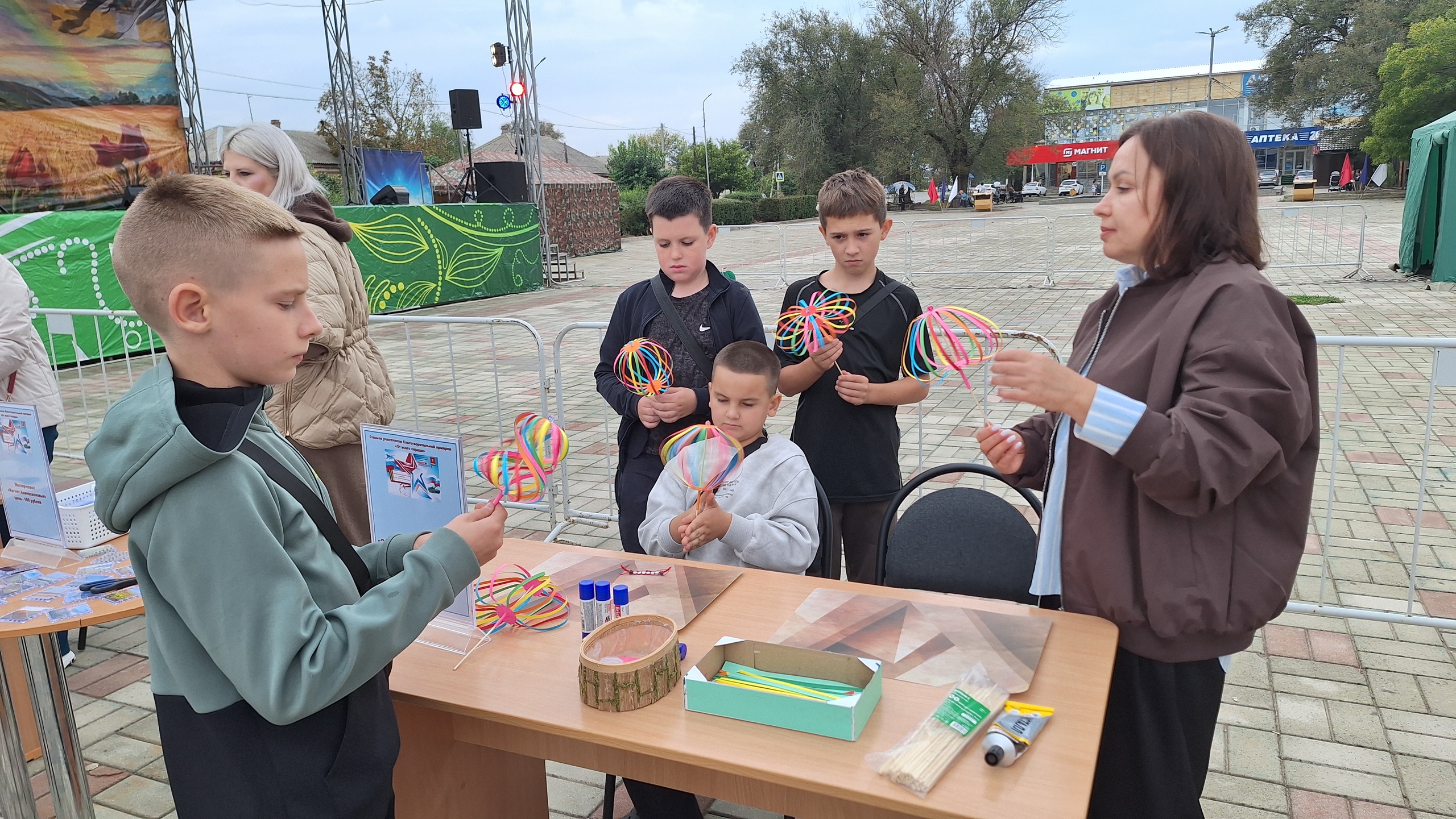 Наша детская библиотека развернула целую фабрику хорошего настроения. Вы знали, что можно сделать себе антистресс за 15 минут? А мы теперь знаем! На мастер-классе «Яркие лучики родной земли» мы дружно мастерили разноцветные вертушки. Крутилось-вертелось всё! А потом мы устроили шумный и весёлый парад наших поделок — было здорово!