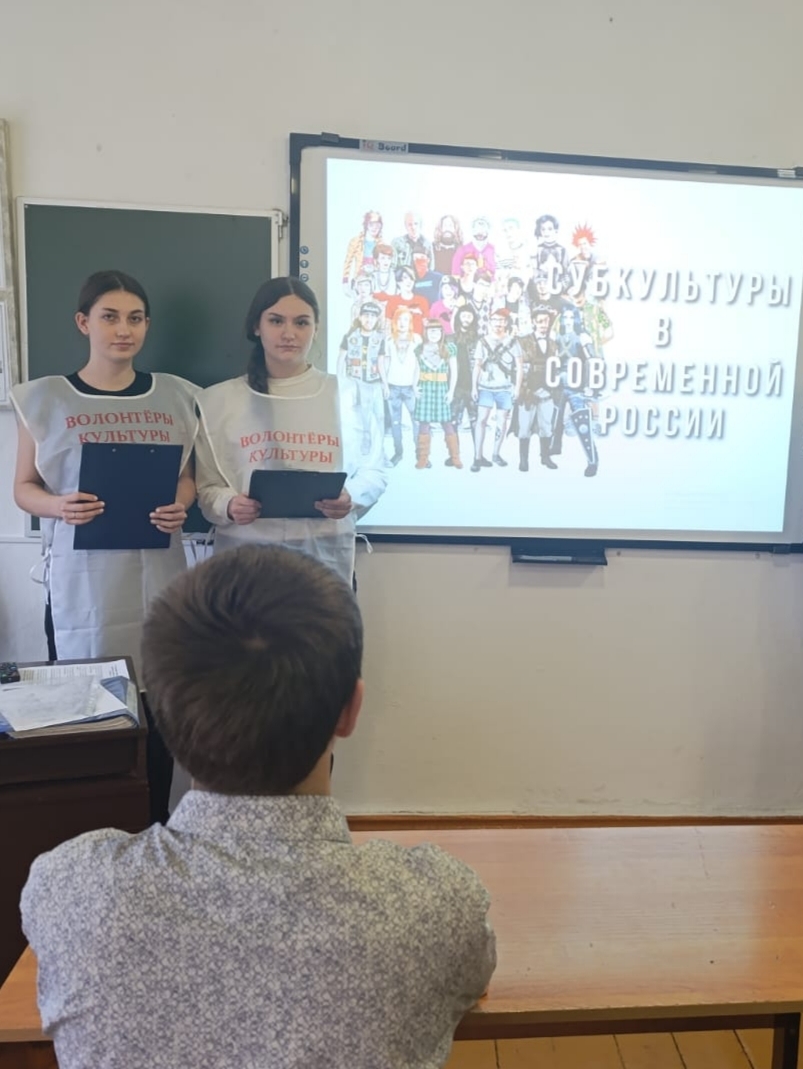 В ходе беседы старшеклассники узнали о значении понятия «Субкультура», об истории и причинах появления и существования этого явления, познакомились с самыми популярными неформальными объединениями: готы, панки, гранжеры, альты, воркаутеры, ролевики и другие. Узнали о психологическом воздействии каждого молодёжного объединения на подростка, а также о необходимости знаний и готовности столкнуться с ее представителями в реальной жизни. Старшеклассники активно обсуждали поставленную проблему, приводили примеры из личной жизни и сделали вывод о воздействие на становление личности человека неформальных объединений.