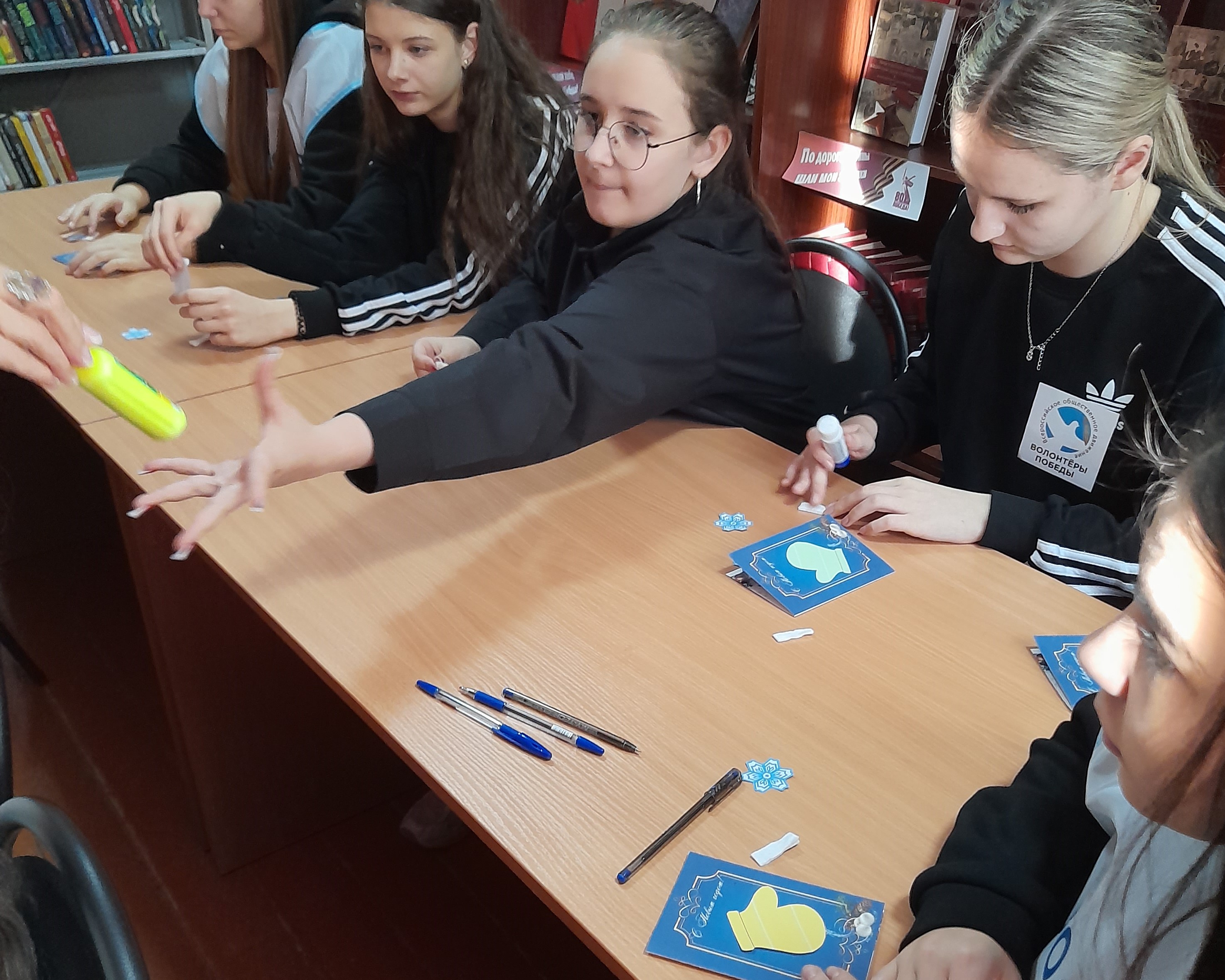 Сельская библиотека совместно с участниками Движения Первых и волонтёрами культуры приняла участие во Всероссийской акции «Новый год в каждый дом», приуроченной к празднованию Нового года. Став участниками мастер-класса «Варежки чудес: создаём новогодние открытки», ребята с помощью библиотекарей изготовили новогодние открытки «Волшебные варежки» для своих сверстников из детского лома села Дивного. Яркие открытки с тёплыми пожеланиями счастливого нового года согреют сердца детей и создадут праздничное новогоднее настроение.