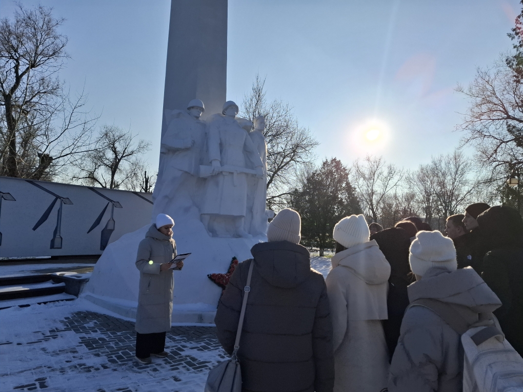 После все участники отправились на экскурсию к памятным местам: Мемориалу Славы и памятнику Вани Ускова, волонтеры Победы рассказали об истории их возникновения, ребята в память о погибших, возложили цветы к памятникам.