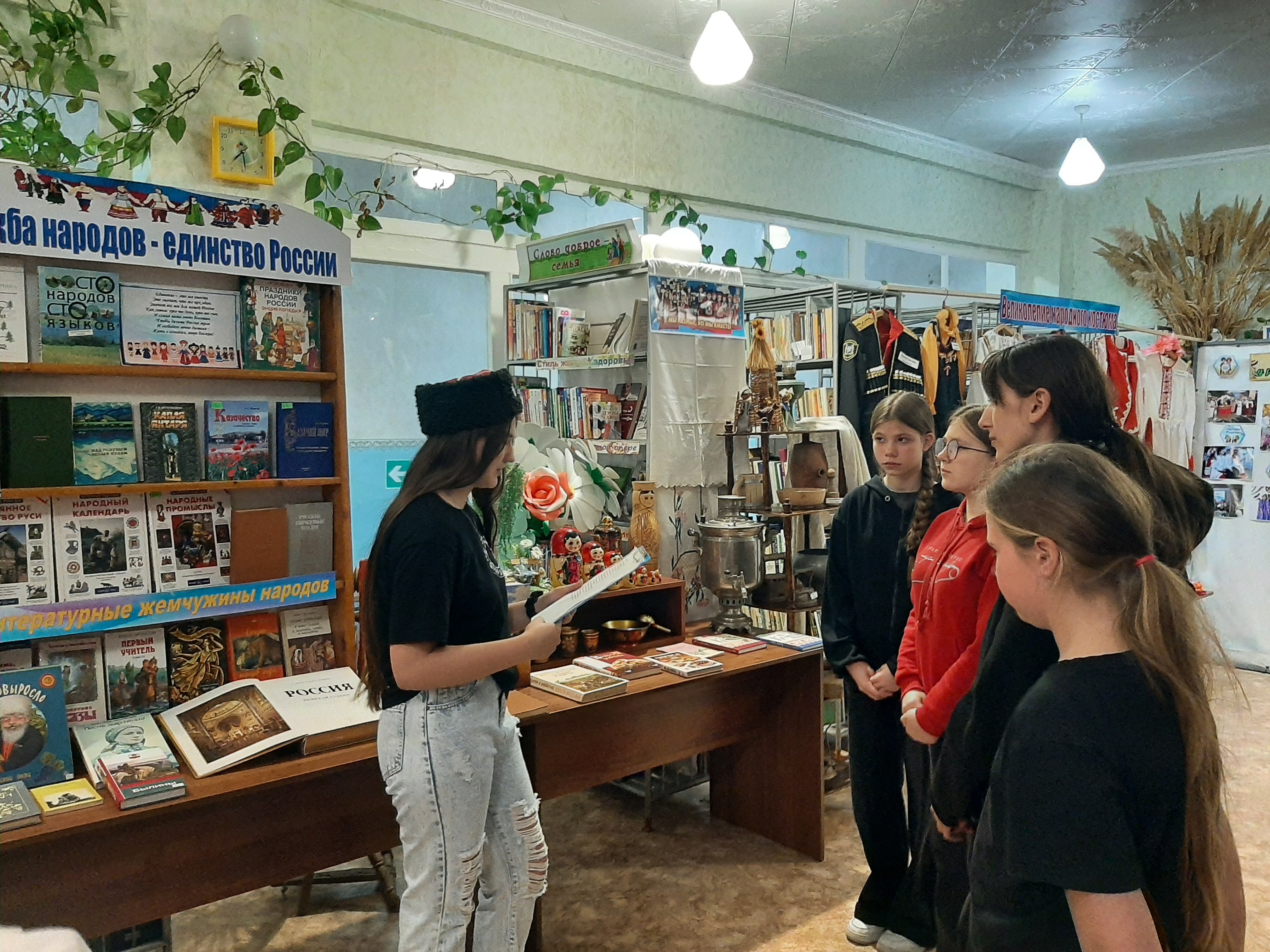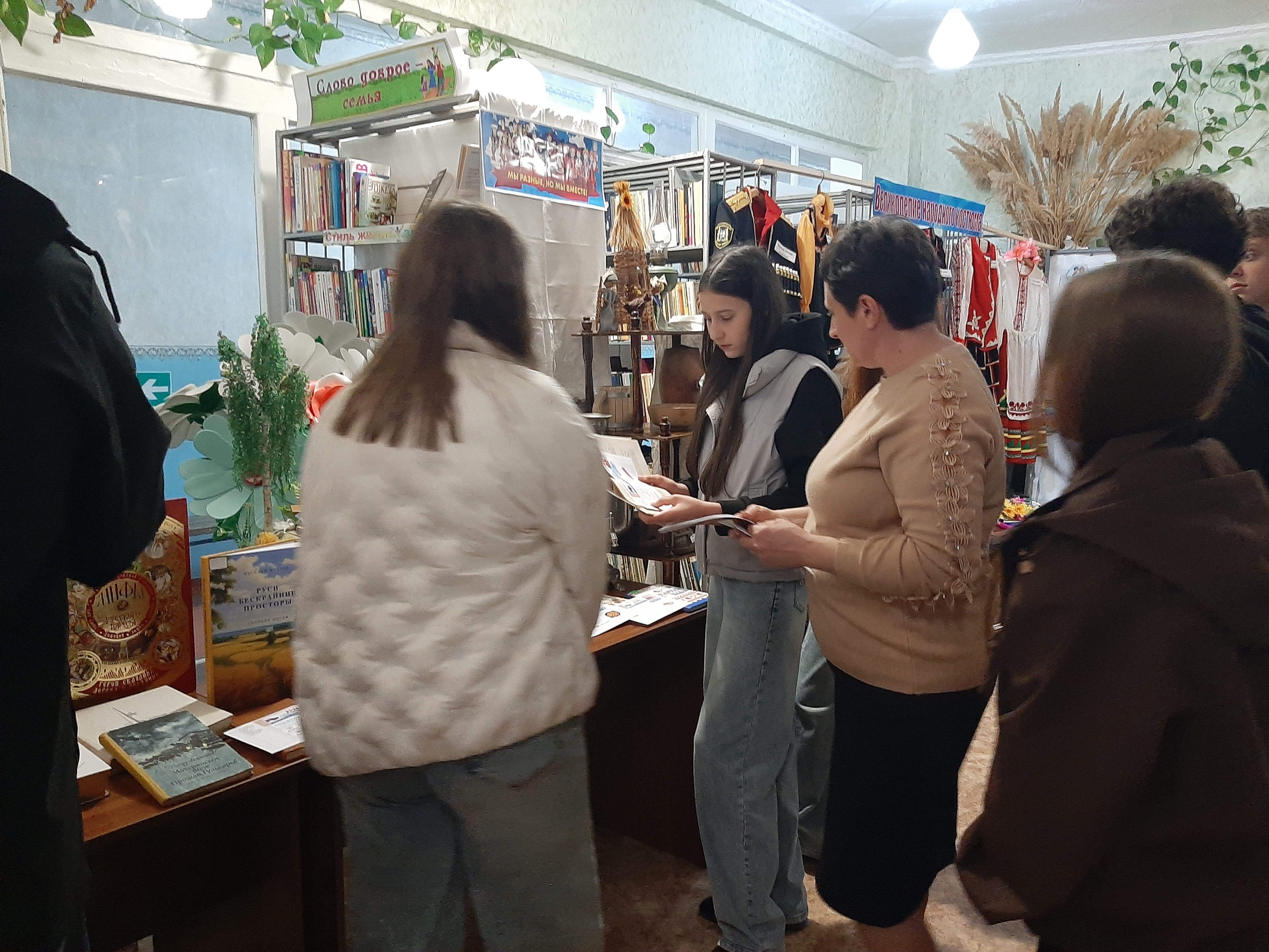 18 апреля в рамках Всероссийской акции «Библионочь-2026», посвященной Году единства народов России, в сельской библиотеке с.Рагули прошло праздничное мероприятие «Венок дружбы». Тема акции - «Единство народов - сила России!». Участники мероприятия «отправились» в увлекательное путешествие, чтобы погрузиться в многообразие культур народов России, познакомиться с традициями, праздниками и национальными костюмами народов России. Загадав желание о мире и согласии, гости повязывали разноцветные «ленточки единства» на «Дерево мира», которое символизировало соединение народных культур. Провели увлекательную викторину «Если мы едины – мы непобедимы», интересную экскурсию «Великолепие народного костюма». У этно-выставки «Дружба народов – единство России», на которой была представлена литература, знакомящая с традициями, укладом, историей и ценностями народов великой России, волонтер культуры прочитала стихотворение «В России дружной и большой…», также звучали стихи разных народов о национальной дружбе, воспевающих единство и мирное сосуществование и взаимопомощь между людьми разных культур. Особым вниманием пользовалась фото-зона «Народов дружная семья» Завершилось мероприятие на библио-посиделках «Традиции гостеприимства», где гости познакомились с традициями чаепития народов России.