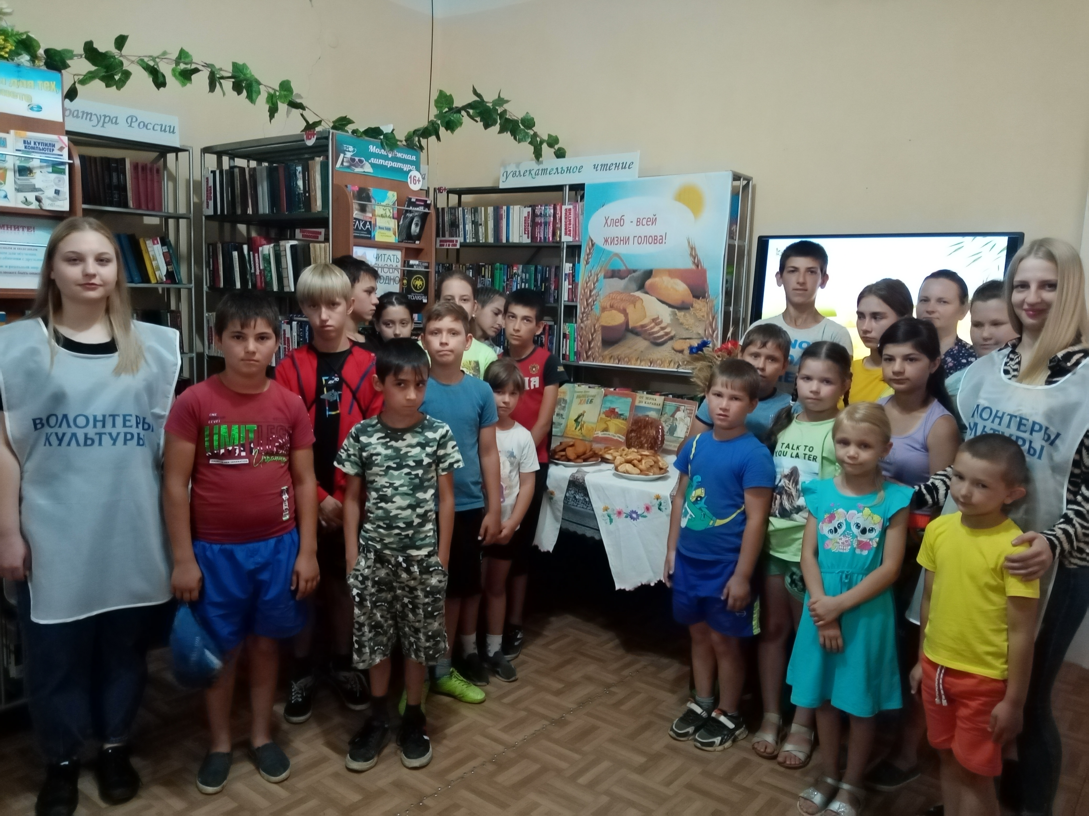 Сотрудники сельской библиотеки села Вознесеновского с помощью волонтёров, провели для детей игровое путешествие «Вот он хлебушек душистый». Детям рассказали историю хлеба «От зернышка до каравая», познакомили со стихами русских поэтов – Т. Благининой, В. Орлова, С. Михалкова. Затем дети вместе с волонтёрами отправились в игровое путешествие по станциям «Загадочная», «Порядковая», «Хлебная», «Вопросительная», «Профессиональная» и «Народная». На каждом этапе детей ожидали испытания – они отгадывали загадки, вспоминали поговорки о хлебе, называли профессии, которые связаны с хлебом. Дети соревновались в знании наименований хлебобулочных изделий и процессе его производства. Во время мастер – класса ребята учились из настоящего теста плести «калач» - старейший вид хлеба на Руси. Завершилось мероприятие просмотром мультфильма «О хлебе». В рамках мероприятия была оформлена книжная выставка «Великое слово – хлеб».