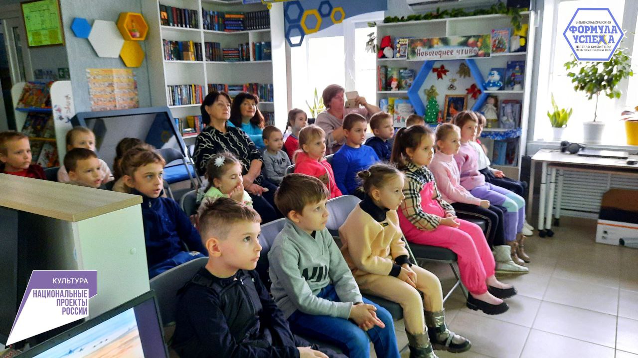В завершении мероприятия, дети смотрели анимационную экранизацию «Солдатская сказка» по мотивам произведения Константина Паустовского «Похождения жука-носорога».