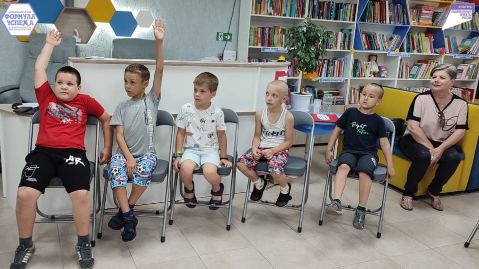 В Детскую библиотеку заглянули ребята из летнего лагеря «Тополёк» МКОУ СОШ № 1, где на книжной выставке «Выдумщик» Андрей Усачёв» и увидели эти красочные повести и стихи автора.