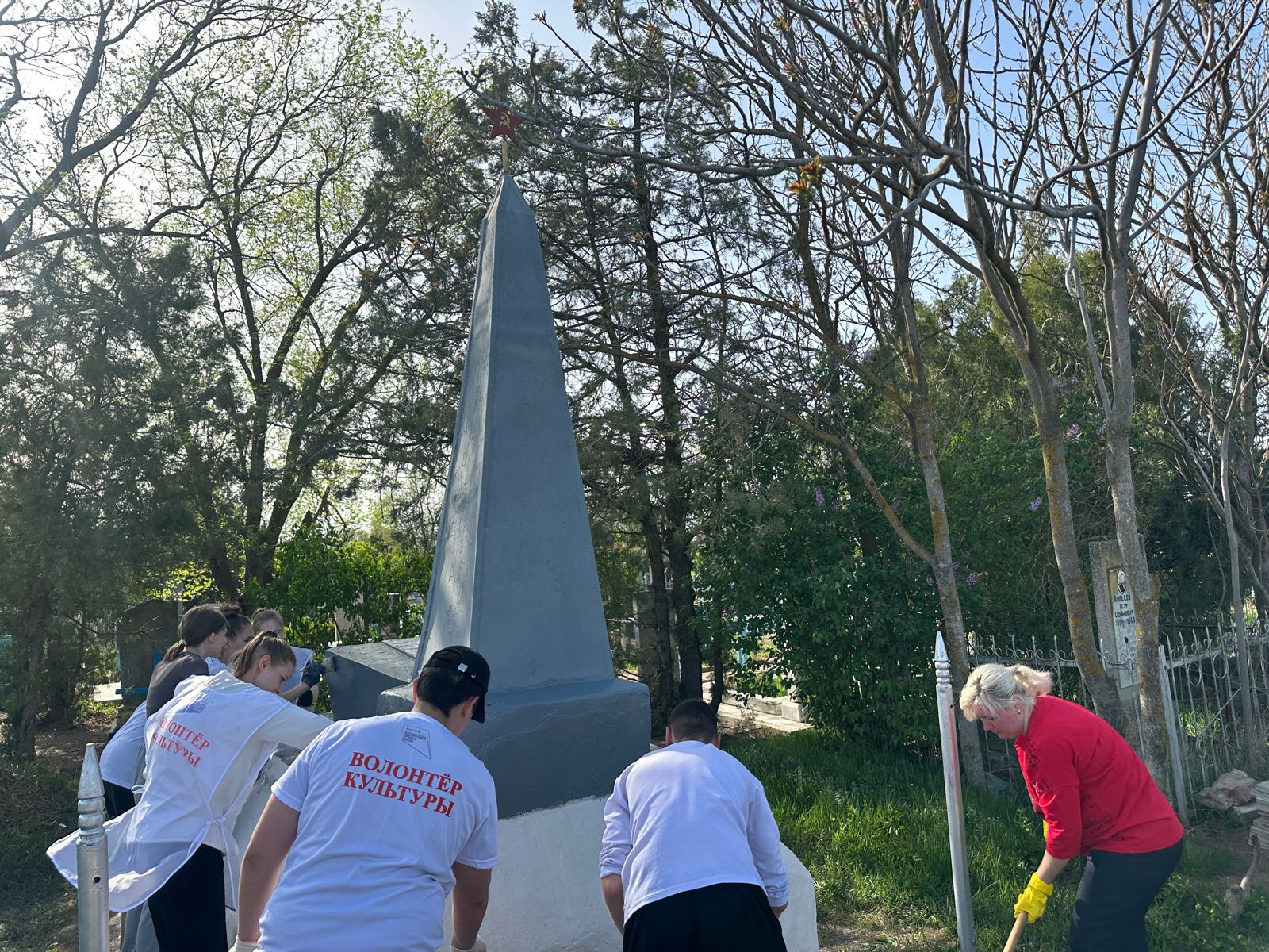 После завершения познавательной части мероприятия библиотекари совместно с волонтёрам культуры провели уборку Братской могилы советских граждан, погибших в годы Великой Отечественной войны, расположенной на Центральном кладбище окружного центра. Участники мероприятия очистили территорию мемориала от мусора, травы и сухих веток, побелили и покрасили памятник.