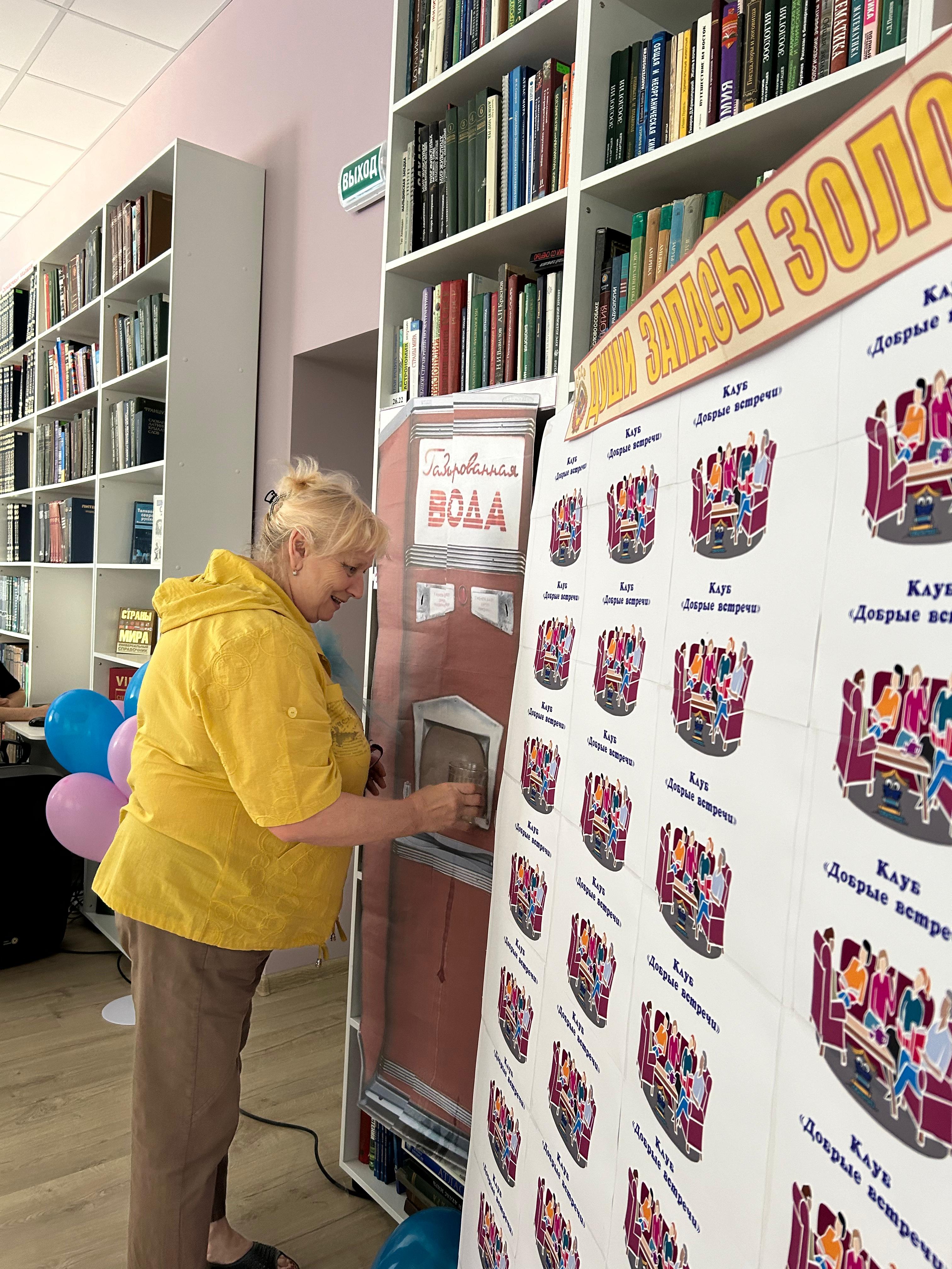 Началось мероприятие с вступительного слова директора центральной библиотеки Евгении Васильевны Пальчиковой, которая поприветствовала всех собравшихся и пожелала клубу добрых дружеских встреч и процветания, а также каждому участнику вручила отличительную брошь. Присутствующие на празднике совершили путешествие в 60-е, 70-е, 80-е годы прошлого века, чтобы вспомнить некоторые значимые события тех лет: любимые песни, фильмы, людей, которые радовали и удивляли. С удовольствием участвовали в викторинах и конкурсах о ценах и товарах, кинофильмах и песнях, об истории и географии СССР. За правильные ответы гости получали деньги Советского государства и покупали стакан газированной воды в имитированном автомате.