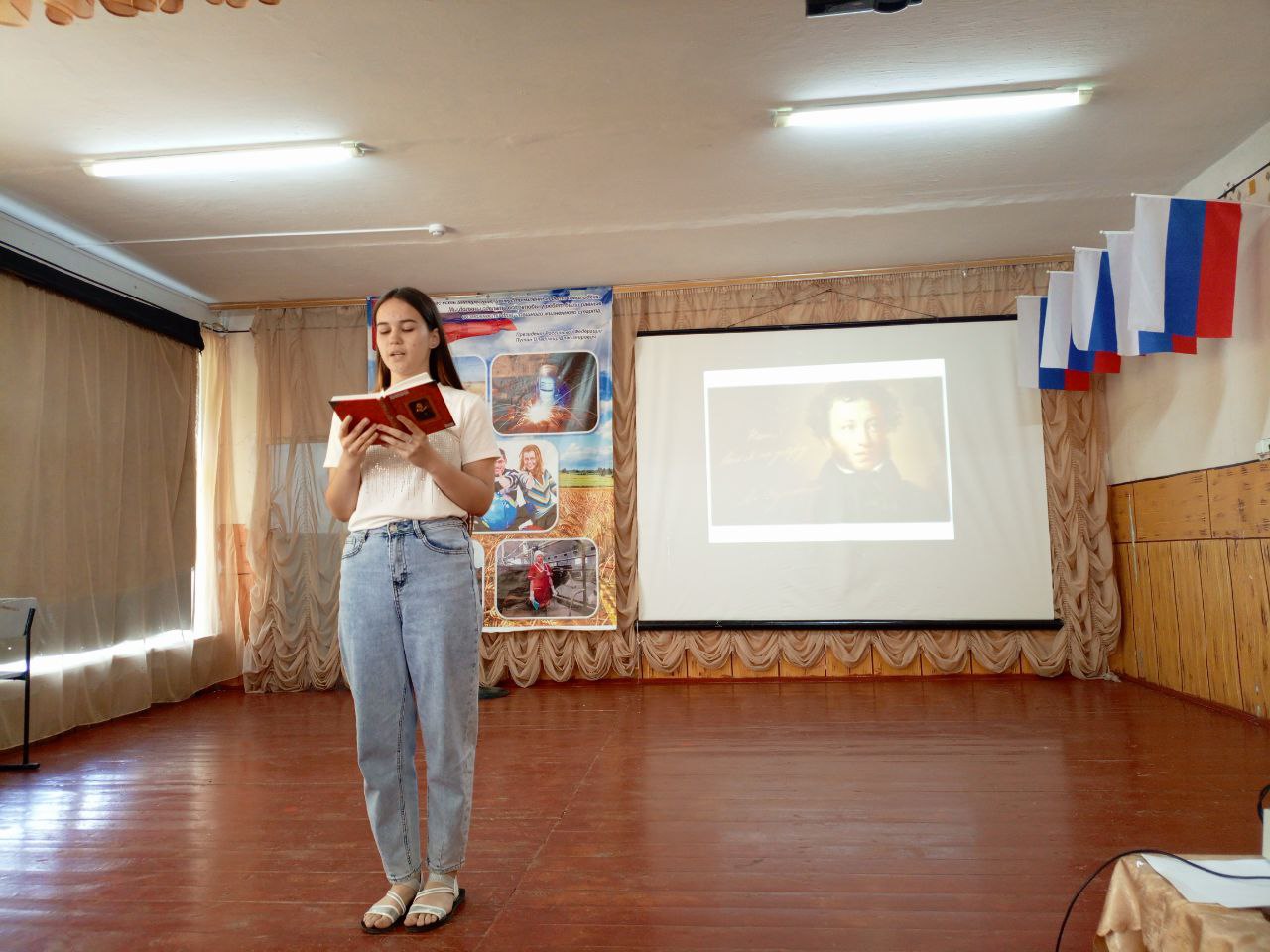 6 июня отмечается 225 лет со дня рождения великого русского поэта - Александра Сергеевича Пушкина. Его творчество любят и дети, и взрослые, поэтому в этот день по всей стране отмечают Пушкинский день России. К этой дате сотрудники центральной библиотеки с. Дивного провели поэтический салон «Пусть в каждом сердце Пушкин отзовётся, в актовом зале Агротехнического техникума.