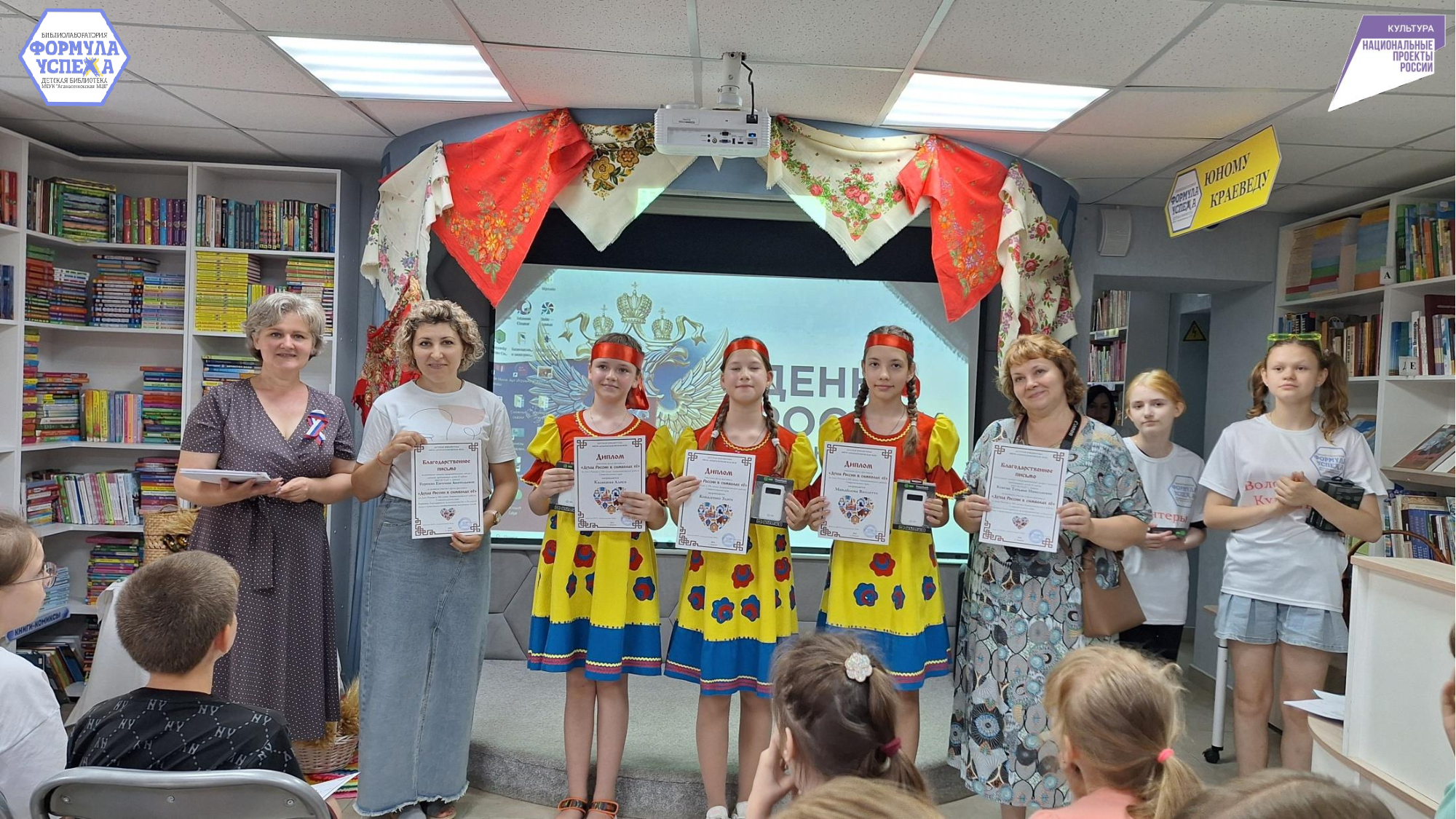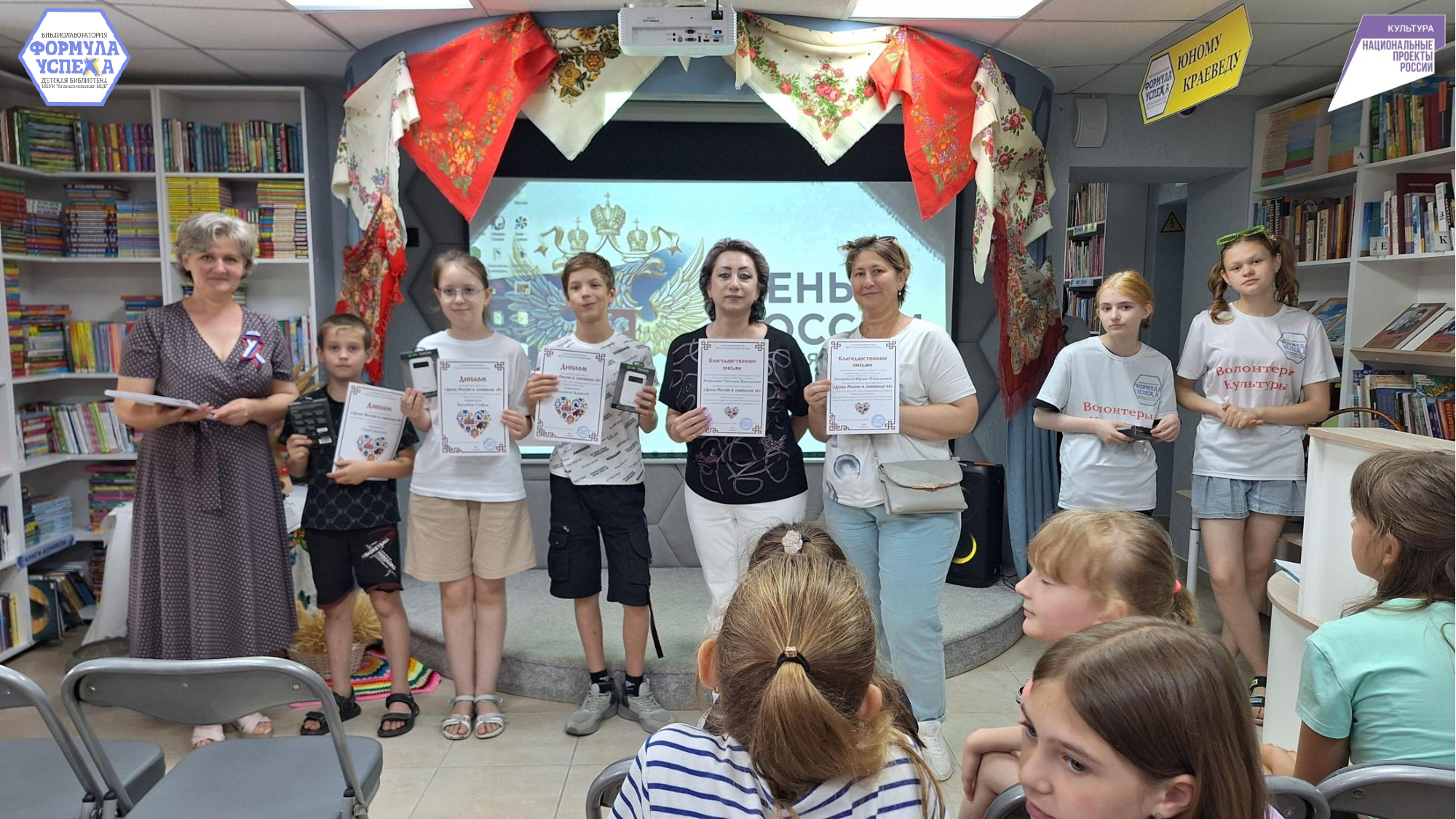 В Детской библиотеке в преддверии Дня России на фолк-фесте «Душа России в символах её» ребята представели негосударственные символы нашей Родины: предметы быта, валенки, куклы-обереги, лапти, расписные деревянные ложки, свистульки, матрешки, белая береза, ромашка и другие символы.