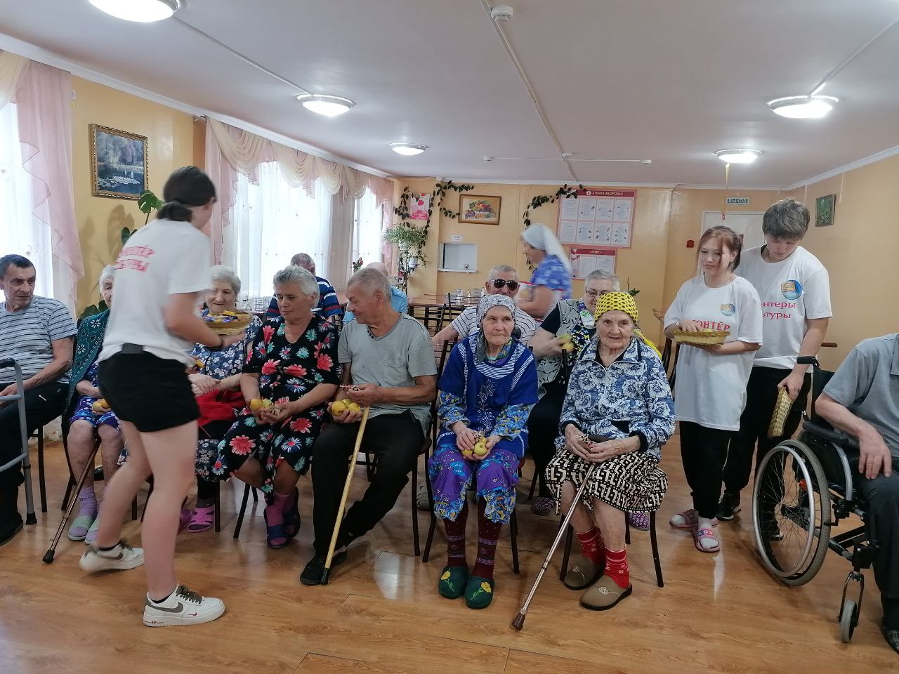 В конце мероприятия прозвучали добрые слова и пожелания крепкого здоровья и всем присутствующим молодые волонтеры в качестве угощения преподнесли освященные яблоки.