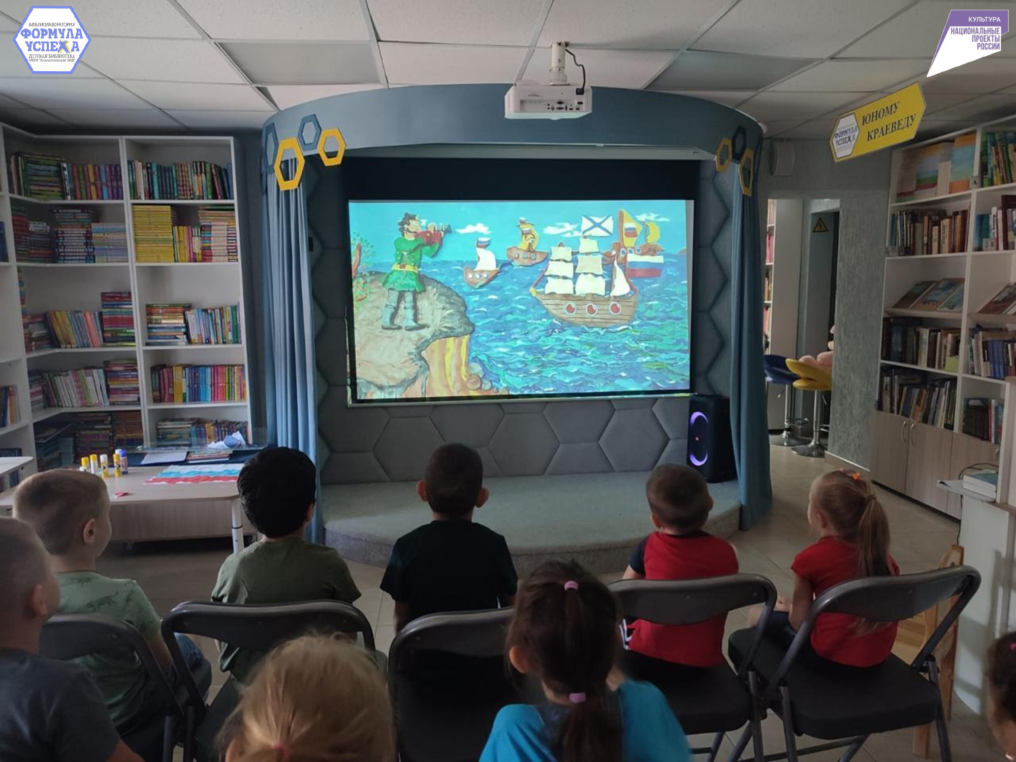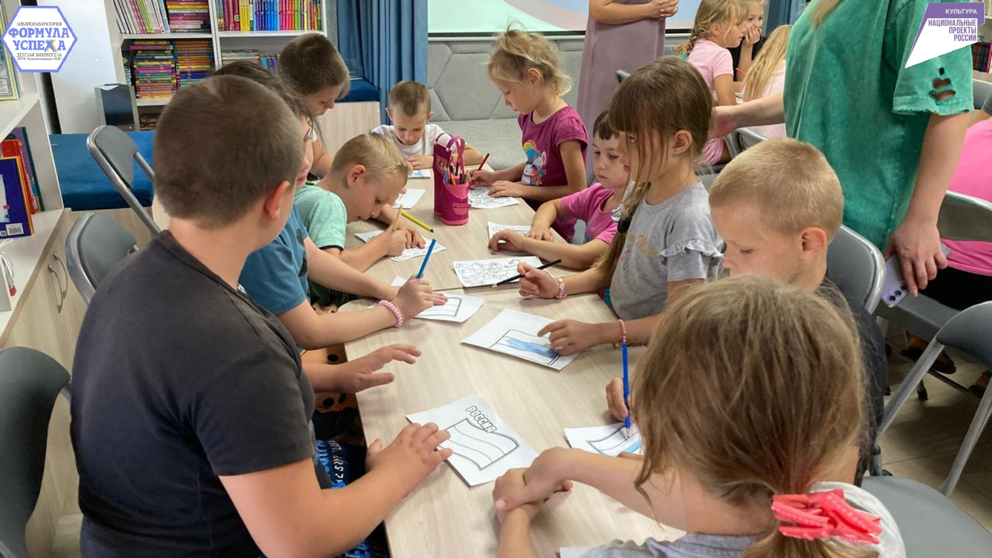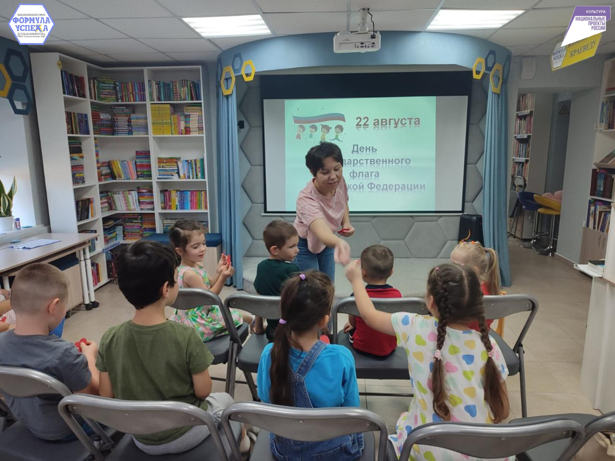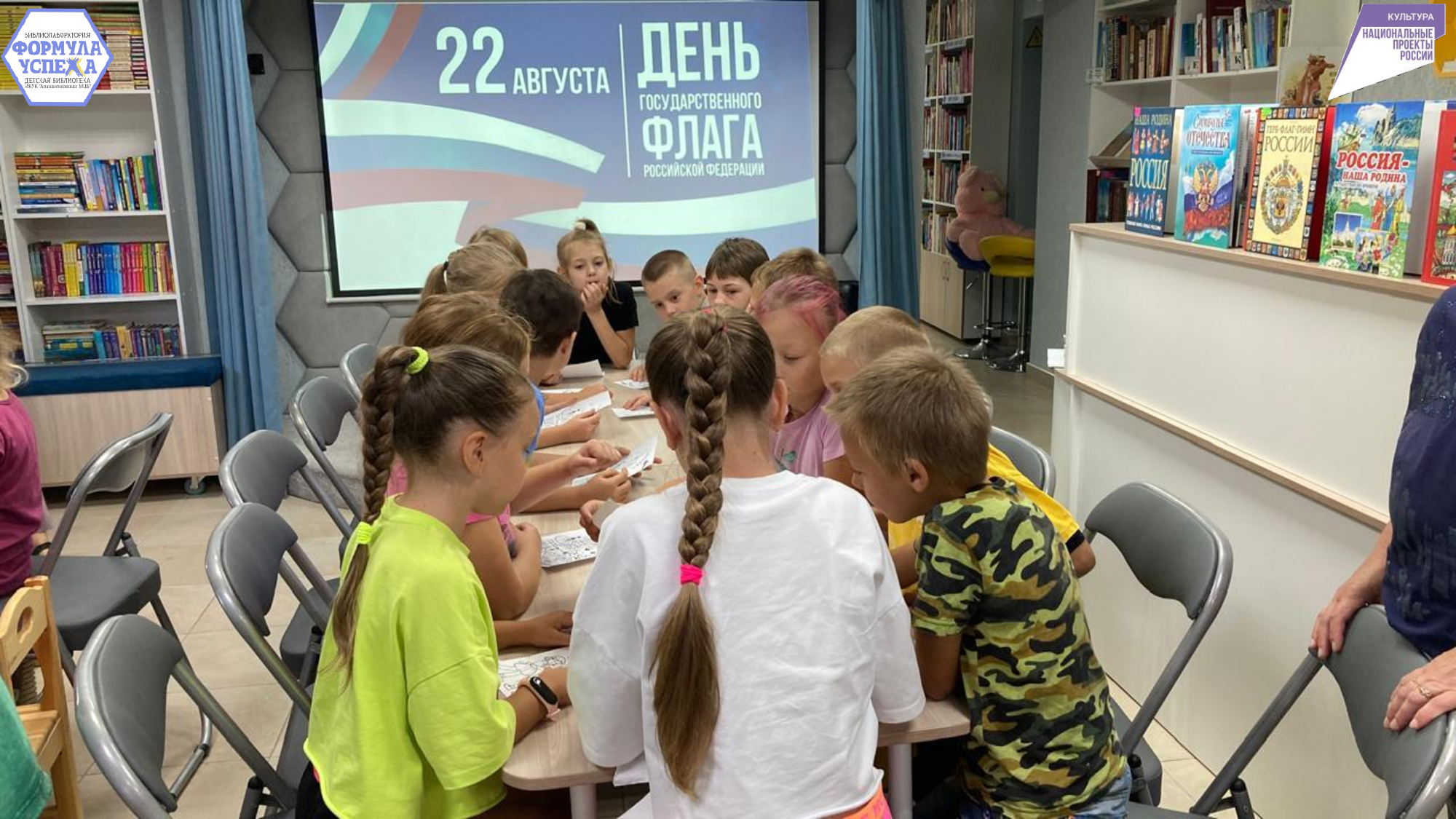В завершении мероприятия гости библиотеки посмотрели мультфильм об истории и значении флага Российской Федерации.