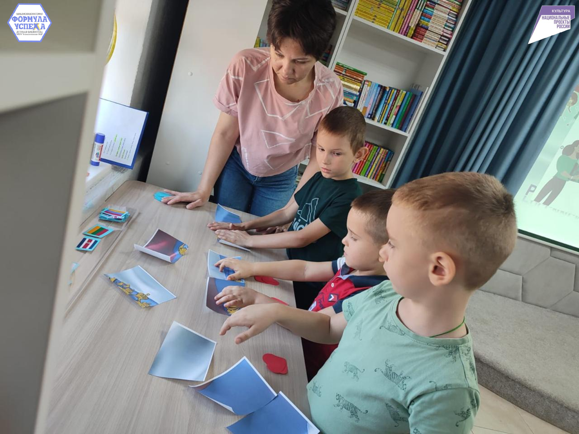 В  Детской библиотеке прошёл час геральдики «Главные краски России». Девчонки и мальчишки из Апанасенковского центра социальной помощи семье и детям отделения дневного пребывания несовершеннолетних пришли к нам в Библиолабораторию «Формула успеха» чтобы больше узнать об истории нашего флага.