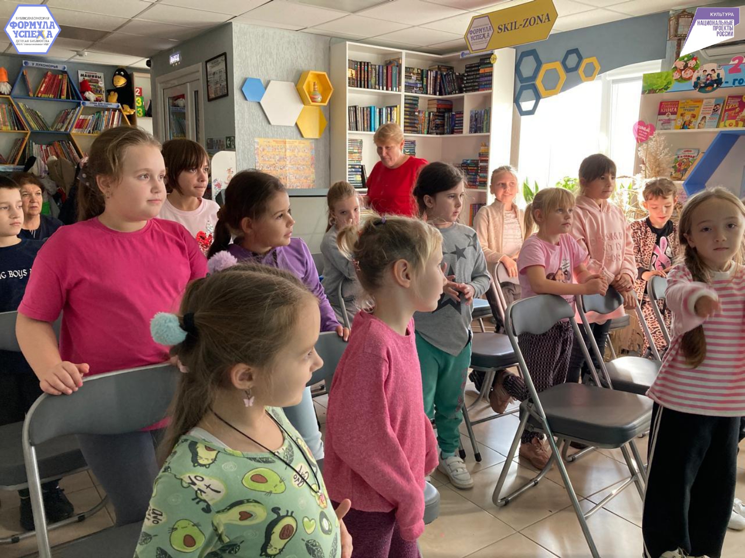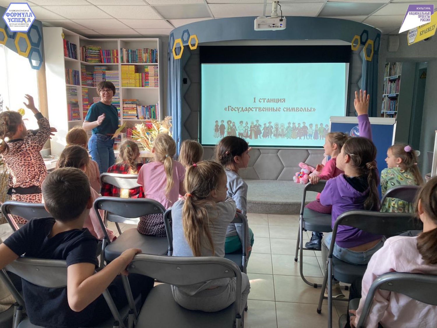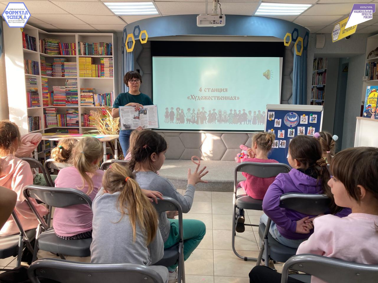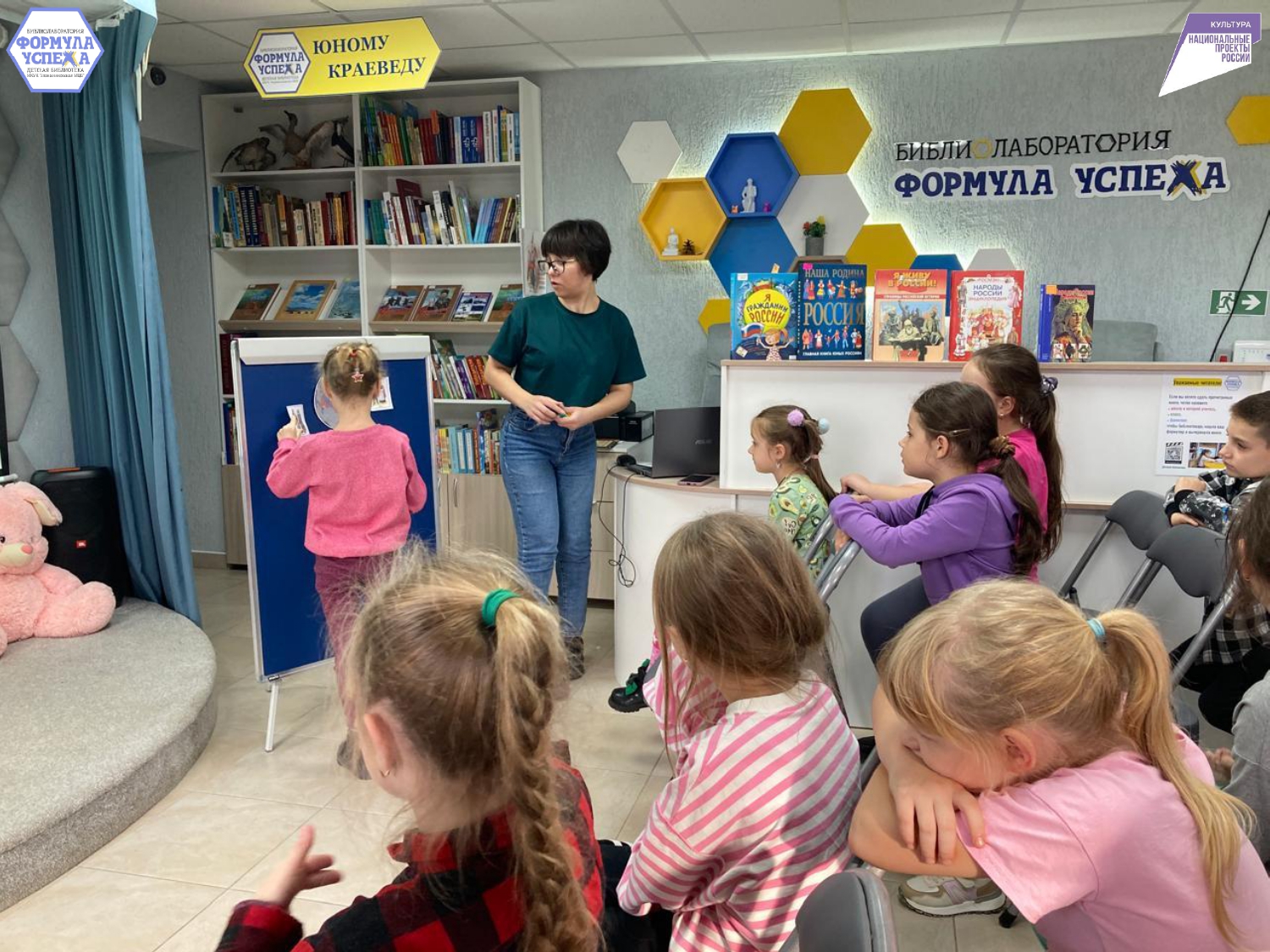 Чтобы узнать об истории этого праздника, ребята пришли в Библиолабораторию «Формула успеха». Библиотекарь познакомила ребят с основоположниками этой даты Кузьмой Мининым и Дмитрием Пожарским. И о том моменте, когда народное единство стало жизненно важным: в ополчение входили представители разных сословий — от крестьян до дворян, готовые сражаться за свободу страны.