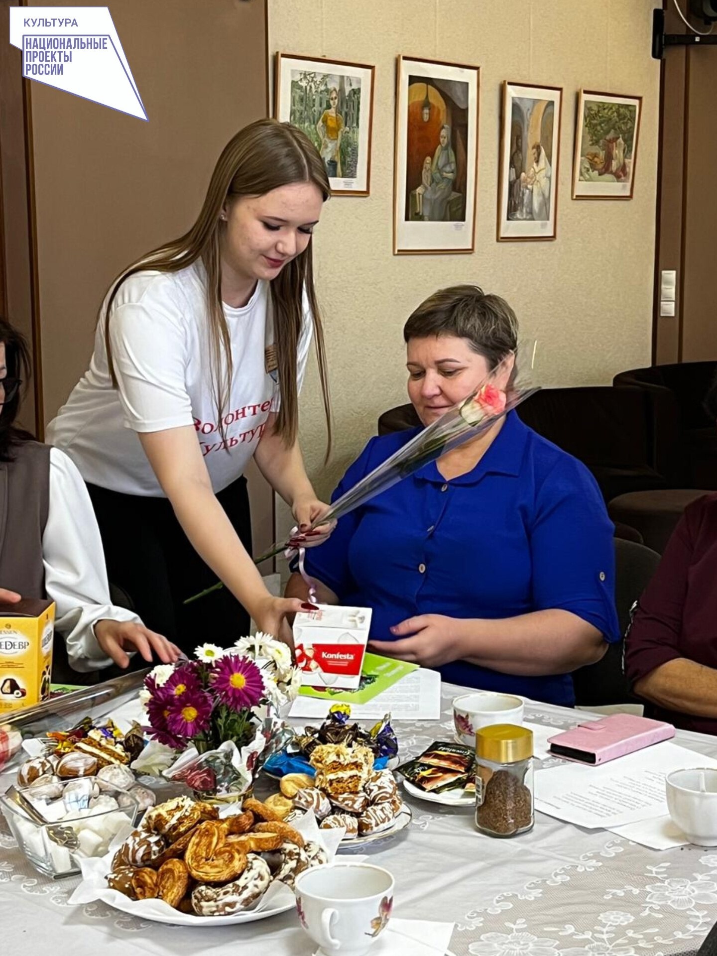 В заключение мероприятия волонтеры культуры вручили всем женщинам — матерям цветы и сладкие сувениры.