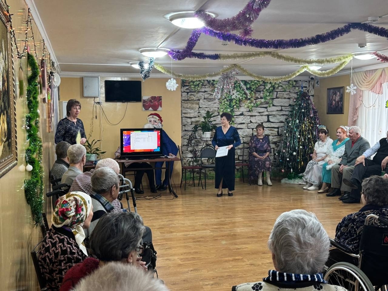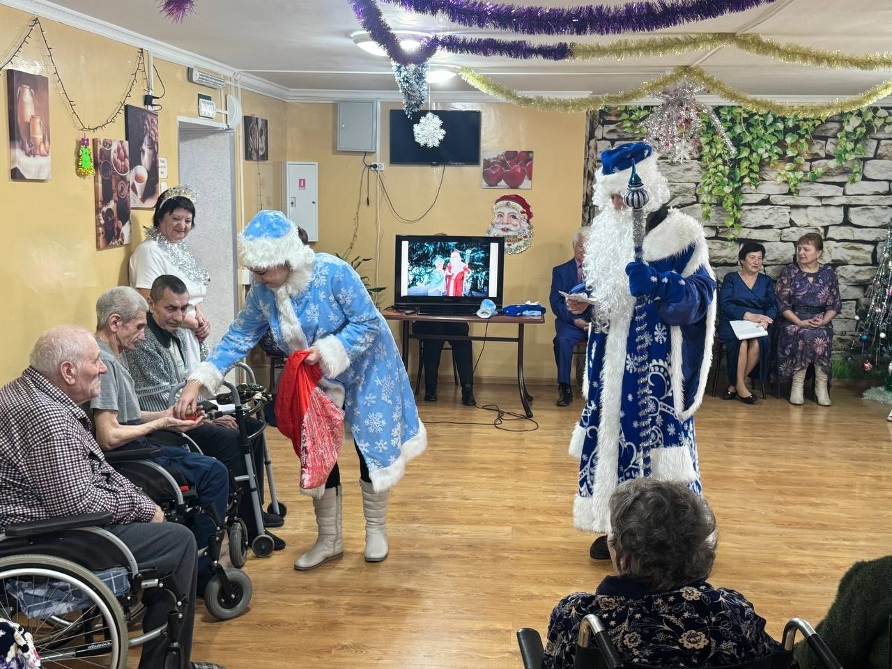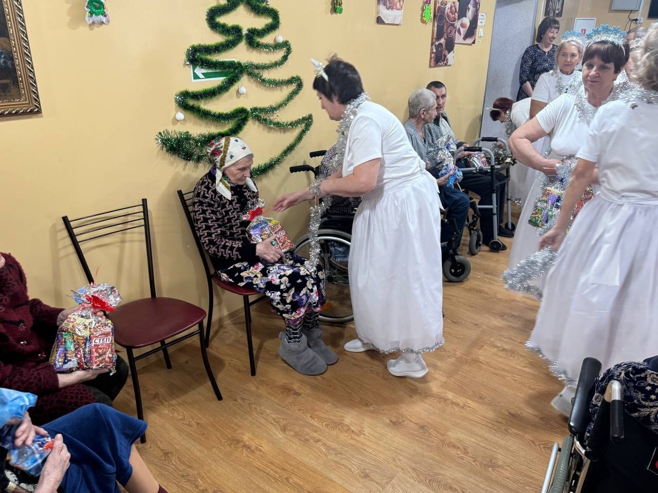 В заключении мероприятия, Дед Мороз и Снегурочка, переодетые волонтеры культуры вручили пожилым людям сладкие подарки. Присутствующие получили массу позитивных эмоций и заряд хорошего настроения.