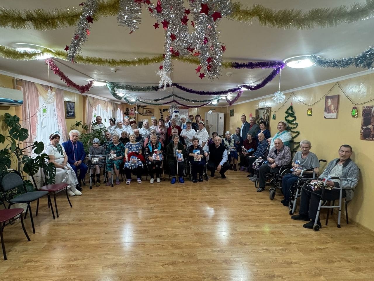 В канун Нового года сотрудники центральной библиотеки совместно с участниками библиотечного клуба «Добрые встречи», Апанасенковской местной организацией «Всероссийского общества Инвалидов» и волонтерами отряда «Общее дело» посетили пожилых людей, престарелых и инвалидов, проживающих в ГБСУСОН «Дивенский дом-интернат «Дубки».