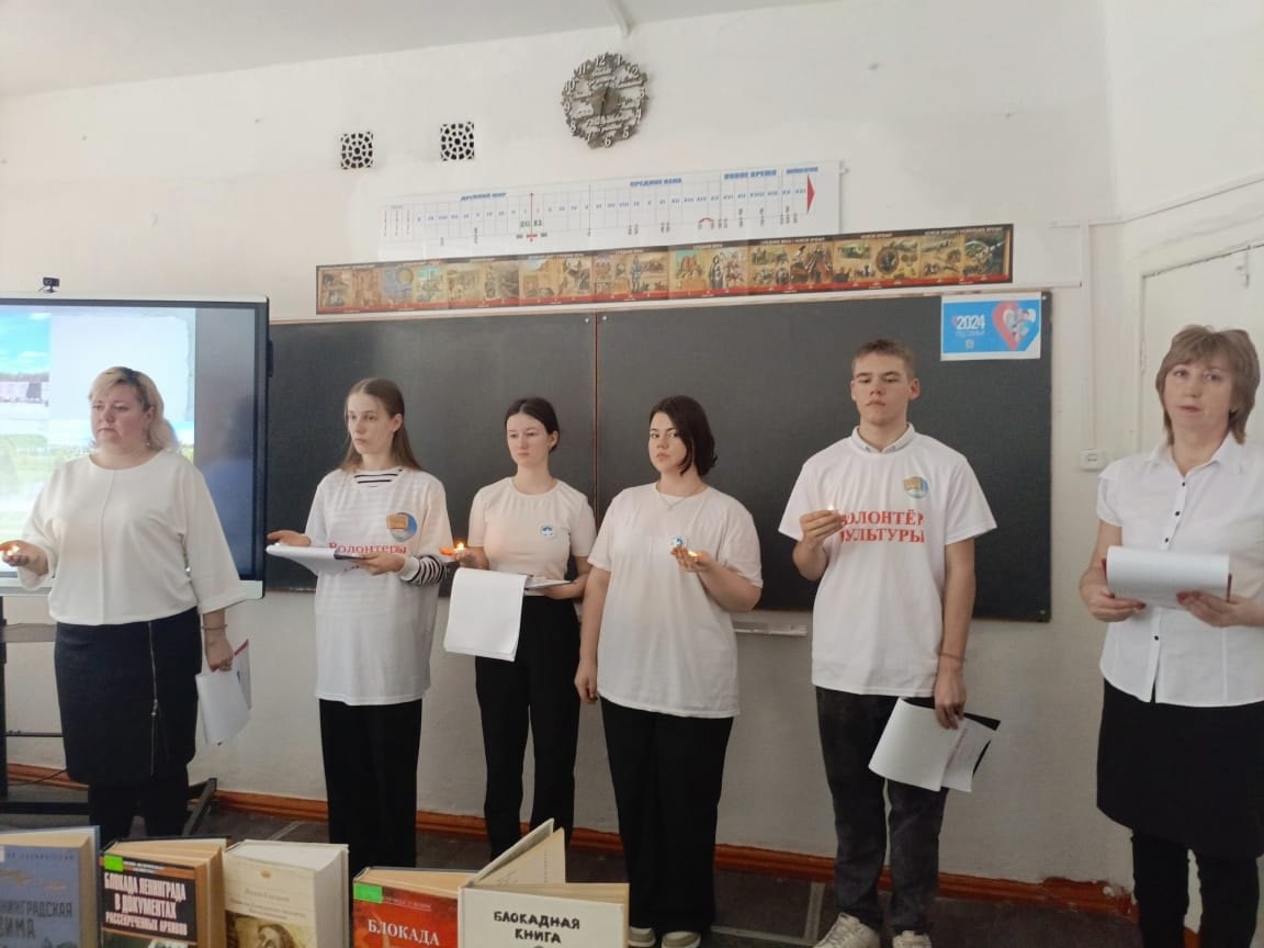 В память о тех страшных событиях для старшеклассников 11 классов МКОУ СОШ №1 (кл. рук. Рудова Е.С., Плугина А.В.) состоялся исторический набат «Выжить вопреки», подготовленный сотрудниками центральной библиотеки в рамках Года защитника Отечества. Библиотекари Ковалева Л.А. и Репкина М.В. совместно с волонтерами Победы (Анна Савельева, Арина Новикова) и волонтерского отряда «Общее дело» (Александра Вечерка, Роман Степанченко) рассказали о том, через какие испытания пришлось пройти жителям осаждённого Ленинграда, о спасительной «дороге жизни» через Ладожское озеро.