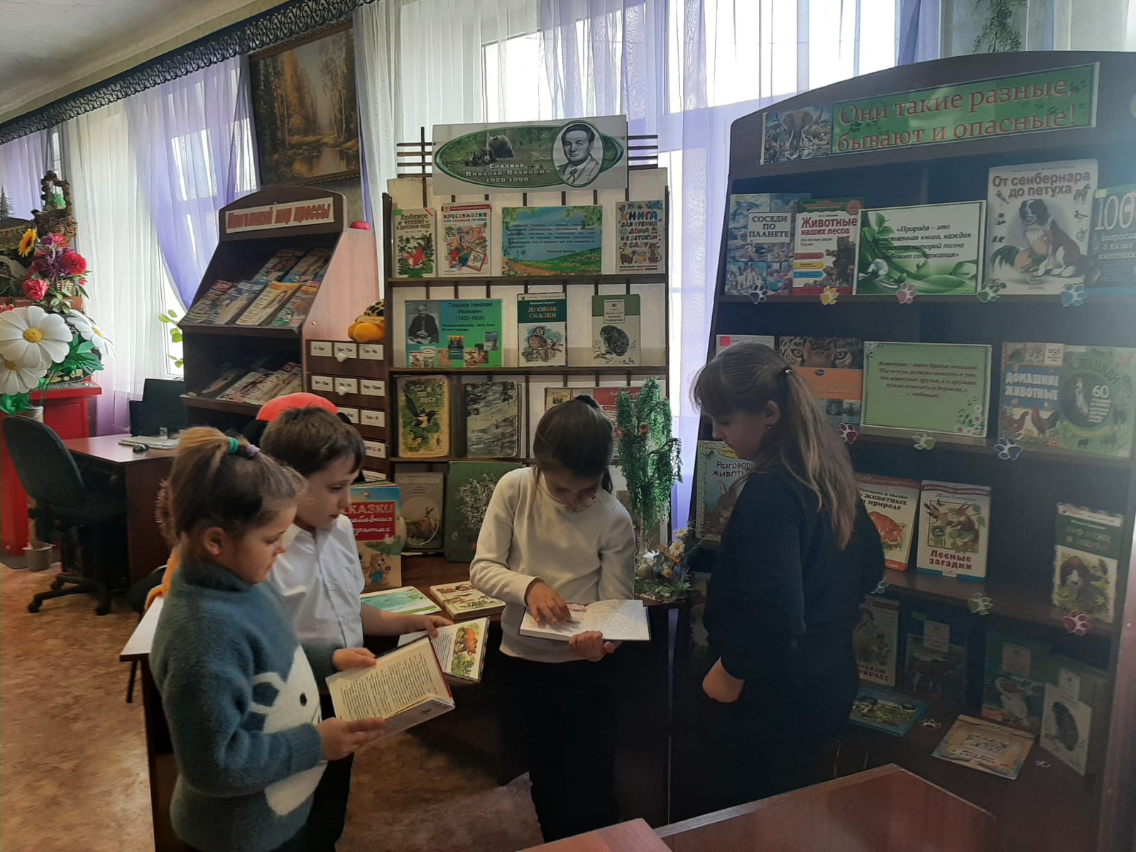 К 105-летию со дня рождения Николая Ивановича Сладкова в сельской библиотеке с.Рагули «раскрутился» литературный калейдоскоп «По дорожкам родной природы». Познакомили ребят с биографией и творчеством писателя-фотоохотника, который был наделен особым отношением ко всему живому, рассказали, что с помощью книг Николая Сладкова можно отправиться в удивительный мир животных, который раскрывает нам свои самые сокровенные секреты. Также участники мероприятия узнали, что Николай Сладков вместе со своим другом Виталием Бианки много лет готовил радиопередачи «Вести из леса». Ребята с удовольствием и большим интересом прочли его рассказы «Медвежий характер», «Хитрющий зайчишка», «Отчего у лисы длинный хвост?» и др. Особым вниманием пользовалась литература, представленная на выставке-рассказе «Они такие разные, бывают и опасные!»