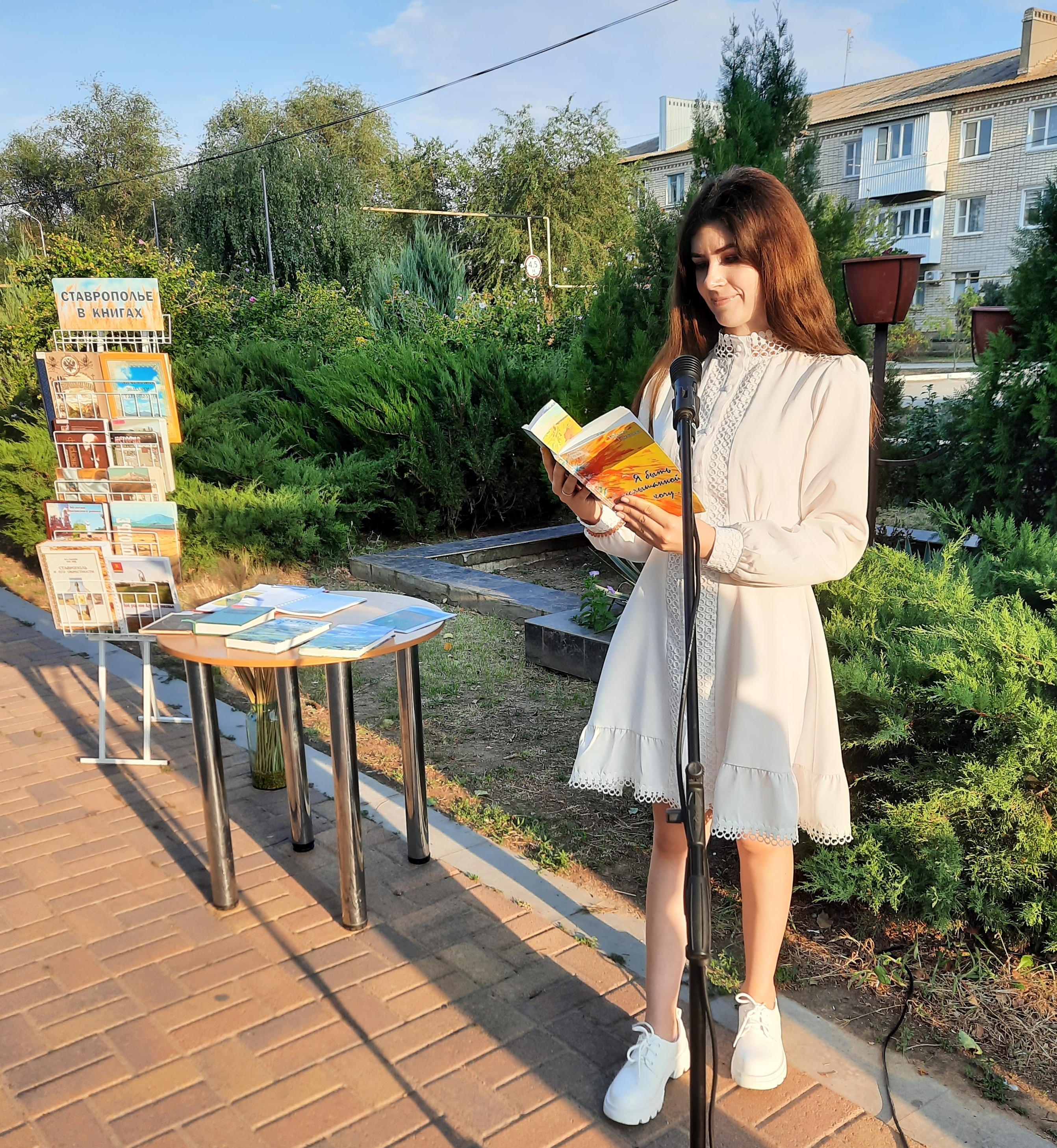 Ежегодно в третью субботу сентября жители Ставрополья отмечают свой праздник - День Ставропольского края, в этом году он состоялся 17 сентября. Сотрудники МКУК «Апанасенковская МЦБ» подготовили к этой дате немало интересных и увлекательных занятий. В сквере им. И. П. Кошеля работала интерактивная площадка центральной библиотеки, где были оформлены фото-вернисаж «Читающие дети = счастливый край» и фотовыставка «ОБЪЕКТИВно о Дивном», на которых были представлены фотографии, опубликованные ранее в социальных сетях центральной и Детской библиотеки, предоставленные нашими читателями. Здесь же проходили библио-пленэр «Тебя воспеваю, мой край родной…» с участием детей и подростков, а для взрослых работал открытый микрофон, каждый желающий мог прочесть стихотворения о крае и нашей малой родине как наизусть, так и выбрав книгу на представленной здесь же книжной выставке «Ставрополье в книгах».