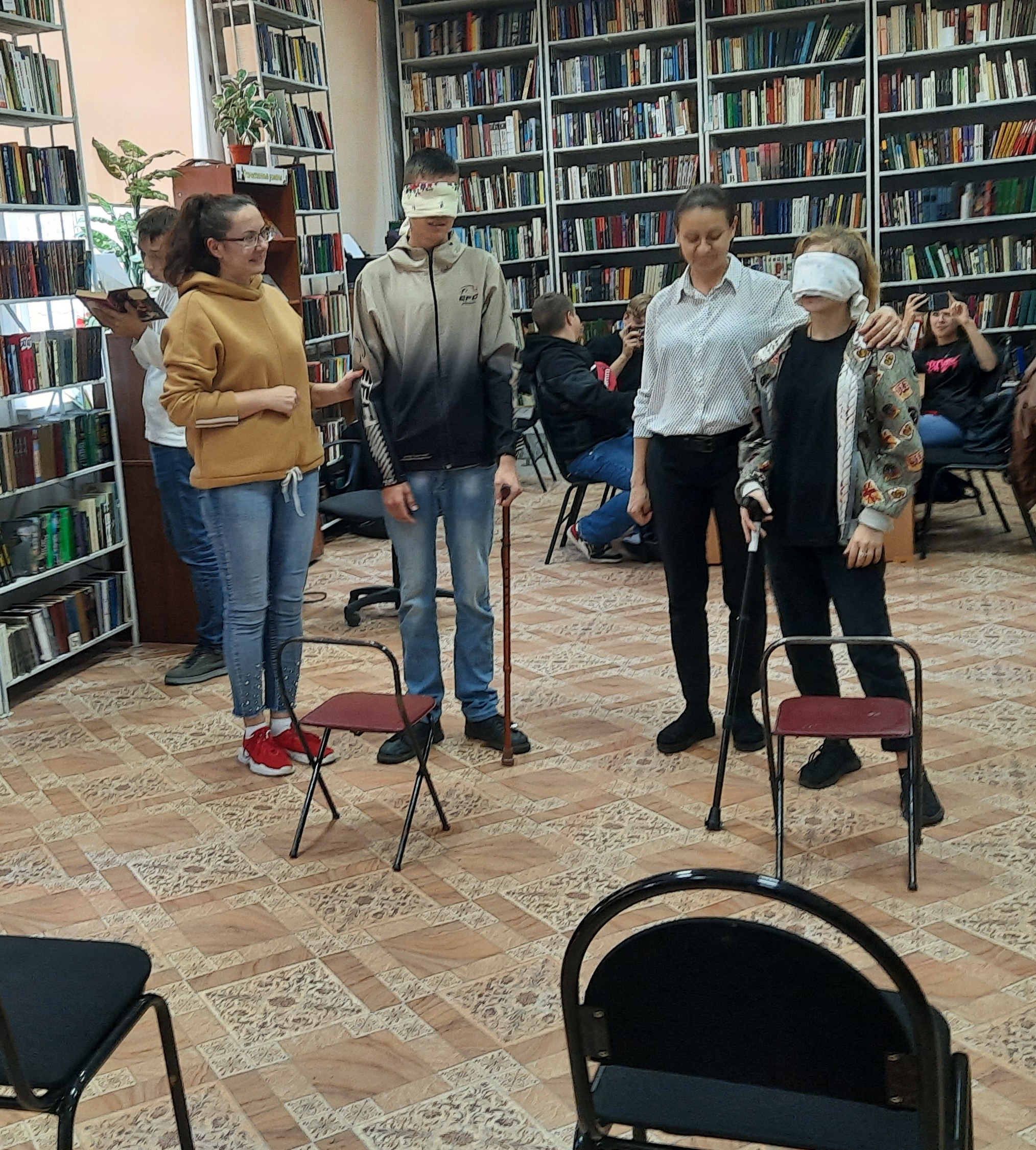Участники мероприятия ощутили себя в роли «слепого», участвуя в тестовой игре «Препятствия», «Угадай предмет», наглядно познакомились с книгой, написанной шрифтом Брайля, попробовали сами на ощупь почувствовать буквы алфавита. По окончании испытаний участники признались, что это очень сложно – жить не видя, на ощупь.