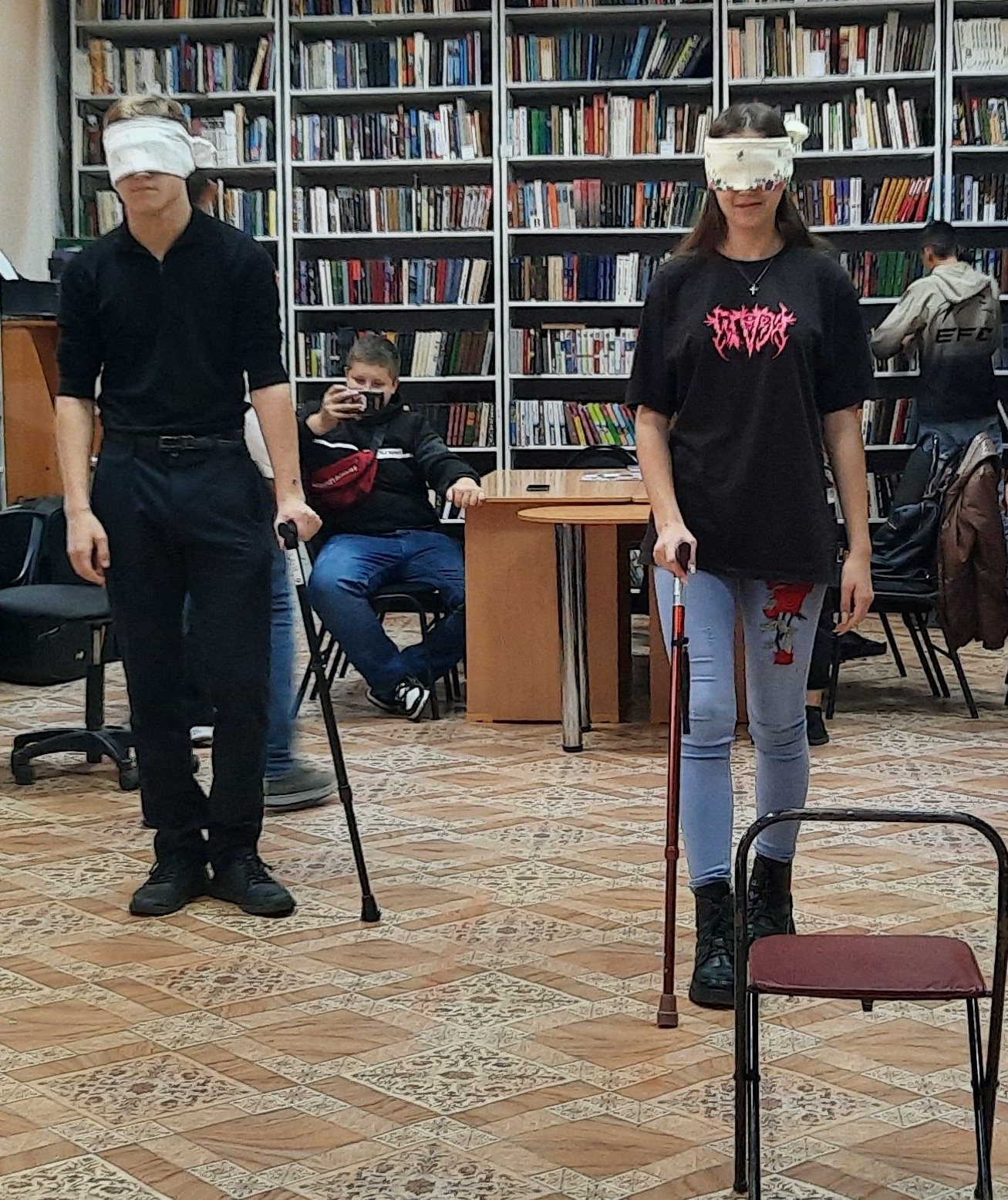 Сотрудники центральной библиотеки познакомили ребят из «Агротехнического колледжа» с историей появления первой белой трости, рассказали, как живут незрячие люди, о тактильно-звуковых устройствах для слепых, показали презентацию о писателях с ограниченными возможностями, которые своим упорством и любовью к жизни добились огромных успехов и обрели мировую славу.