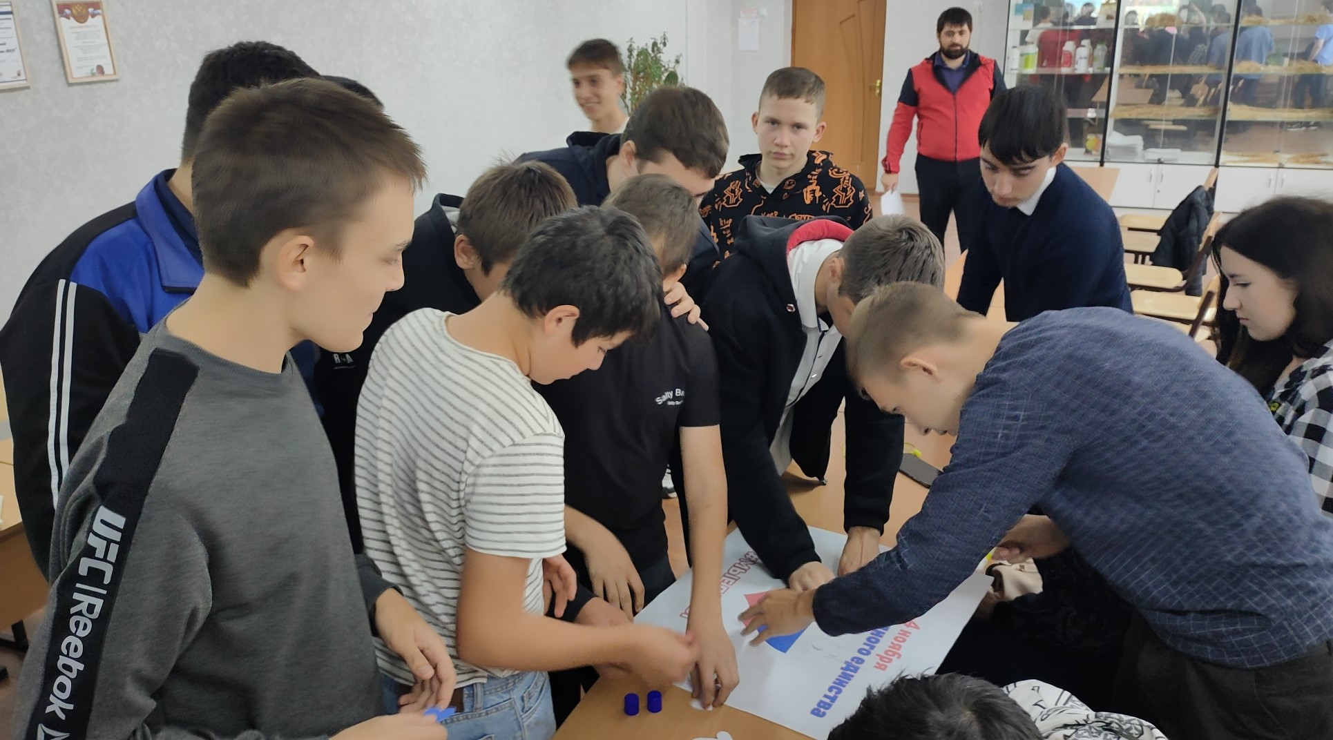 Студенты с удовольствием выполнили творческое задание, после чего сделали коллективное фото на память с получившимся плакатом.