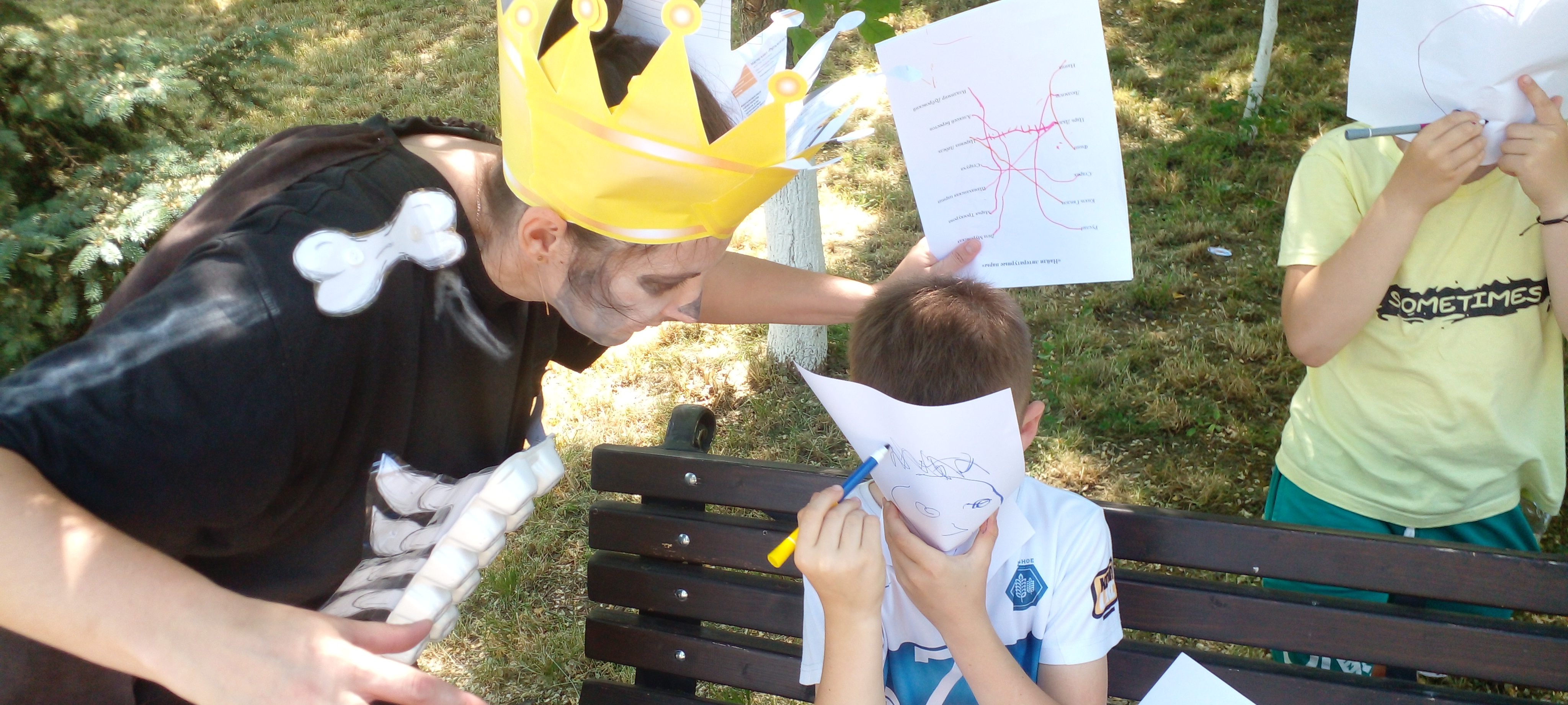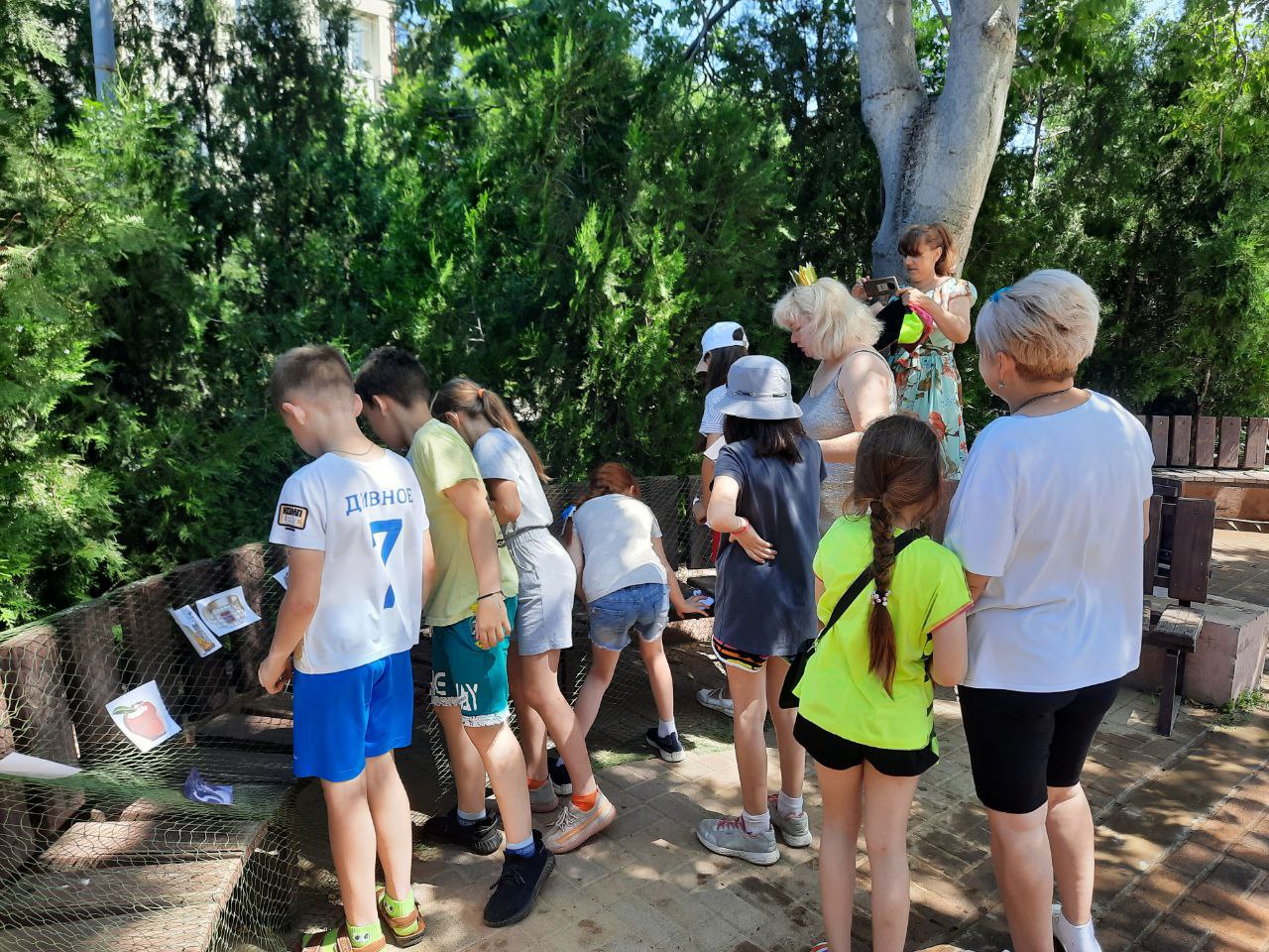 У входа в сквер лежал Вещий камень с надписью: «Налево пойдёшь к Коту попадёшь. Направо пойдёшь к Кощею попадёшь. А прямо пойдешь к Рыбке попадёшь». Каждый сказочный персонаж ждал команды на своей станции с заданиями.