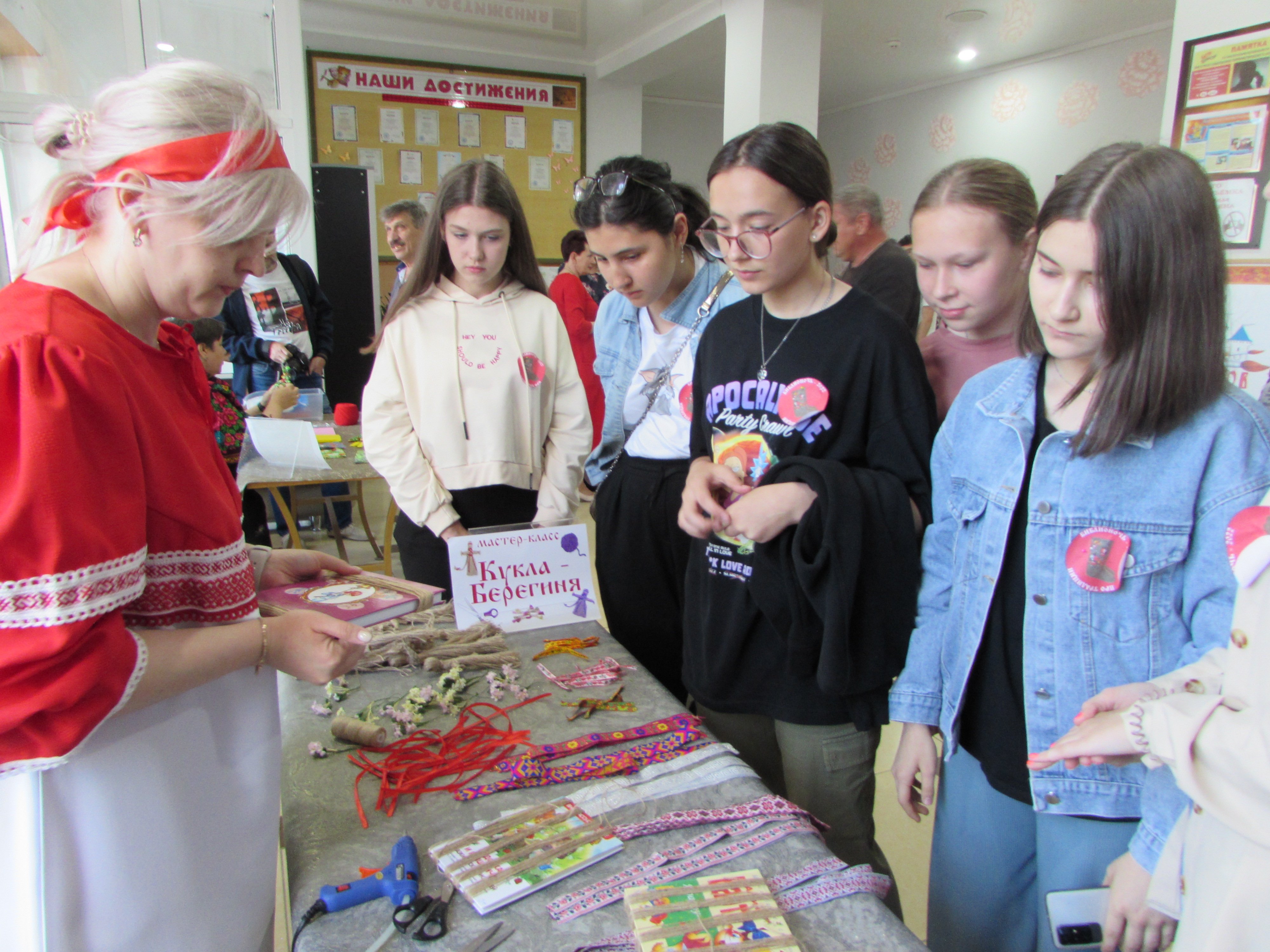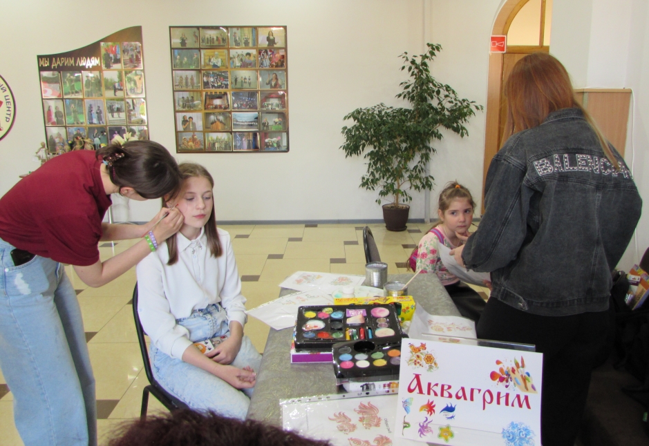 В течение всего мероприятия работала творческая площадка «Город мастеров» на которой прошли мастер-классы: «Кукла - Берегиня» по изготовлению куклы из ниток и народной игровой куклы «Зайчик на пальчик». Здесь же действовала площадка с аквагримом от партнеров библиотеки - Детской художественной школы села Дивного.