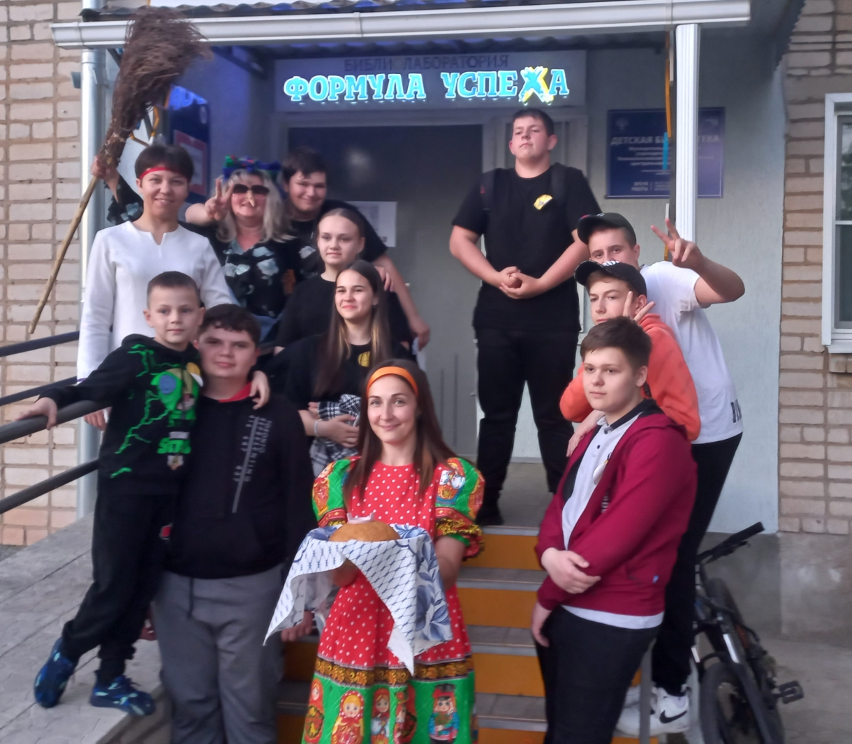 Ещё одной из площадок квеста в этот день стала Детская библиотека где прошли «Фольклорные бирюльки». Гостей встречала Марья Искусница, по народной традиции хлебом, солью. С Бабой Ягой все желающие спели частушки. Баба Яга навела мороку в русских народных сказках, которую пришлось распутывать ребятам. На площадке «Баба Яга против!» Баба-яга – один из самых узнаваемых героев волшебных сказок, хоть и показалась зрителям, сначала страшной и злой, но после пройдённых участниками квеста испытаний помогла Ивану Царевичу, с помощью волшебной книги вернуться в сказку.
