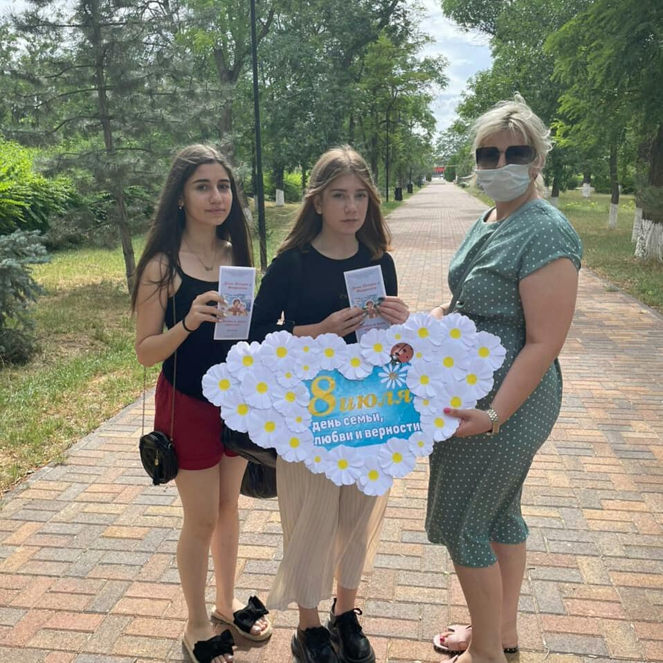 В преддверии Дня семьи, любви и верности, который ежегодно отмечается 8 июля, сотрудники Апанасенковской межпоселенческой центральной библиотеки, совместно с сельской библиотекой с. Дивное провели акцию «Ромашковое лето» в рамках которой прошла стрит-акция «Символ семьи, любви и верности».