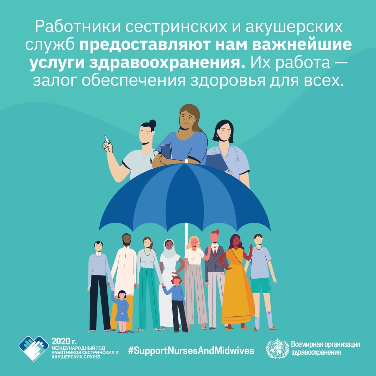 Медицинские сёстры и акушерки, являясь уважаемыми коллегами всех медицинских работников, незаменимы в охране всеобщего здоровья, цените их труд.