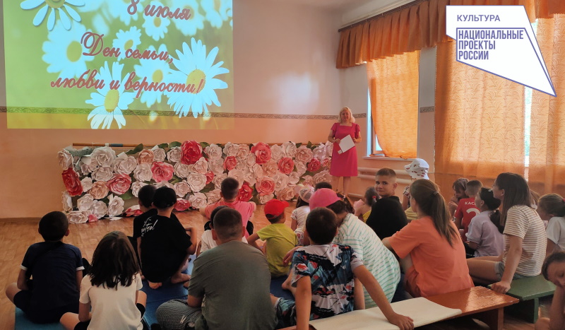 В первой части мероприятия библиотекарь рассказала краткую историю появления праздника, затем ребята отдыхающие в лагере посмотрели видеоролик «Святые Пётр и Феврония» повествующий об истории любви святых благоверных супругов Муромских князей Петра и Февронии.