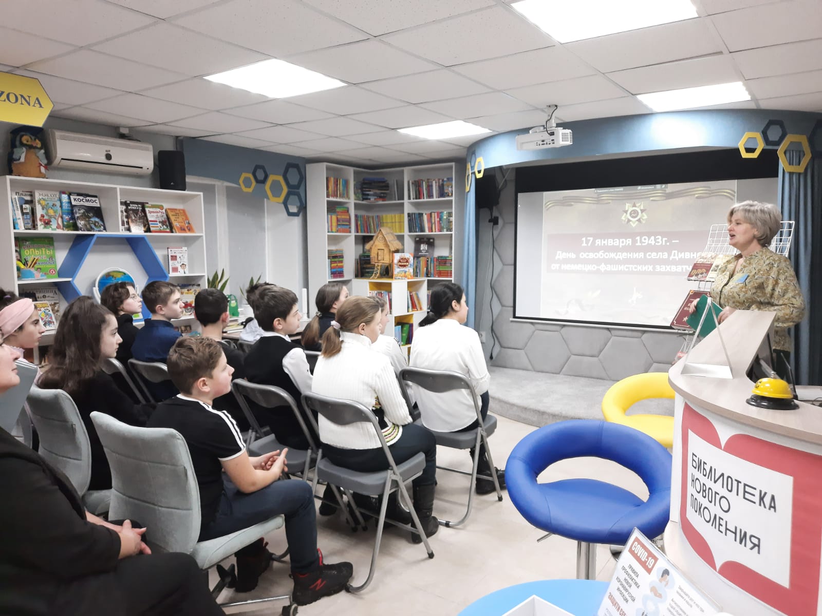 Память о тех, кто отдал жизнь, защищая свой народ, с древнейших времен почиталась на Руси. Вот и в эти дни в Детской библиотеке состоялись мероприятия, приуроченные к памятной дате жителей села Дивного - ко Дню освобождения от немецко-фашистских захватчиков. Такие встречи направлены в первую очередь на сохранение памяти о событиях Великой Отечественной войны и изучение подрастающим поколением героических страниц истории родного края.