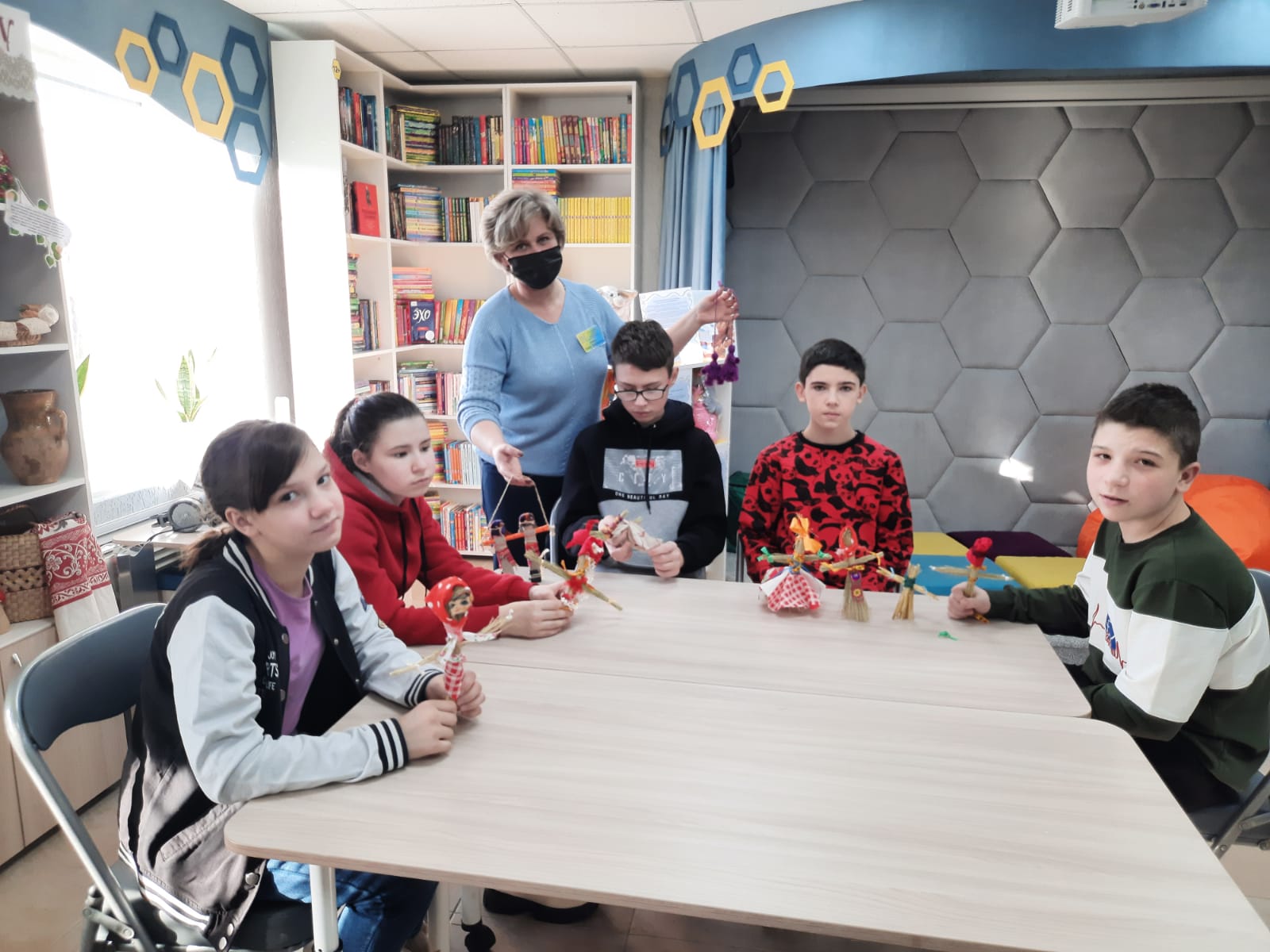 В преддверии Масленичной недели воспитанники детского дома посетили детскую библиотеку. Ребятам рассказали о масленичных традициях и символах, о том, почему масленичный блин является не просто праздничным угощением, а символом золотого солнца, ожившего после зимней спячки, а также показали презентацию «Масленица - красавица душа!». Как правило, на Масленицу в каждой семье мастерили куклу. Кукла Масленица являлась обязательным атрибутом веселого народного гулянья - проводов зимы. Она была символом достатка в семье и мощным оберегом жилища. Детям было предложено принять участие в мастер классе «Кукла - маслёнка». С большим интересом дети из соломы мастерили кукол, доводя образ при помощи лоскутков ткани, разноцветных ленточек.